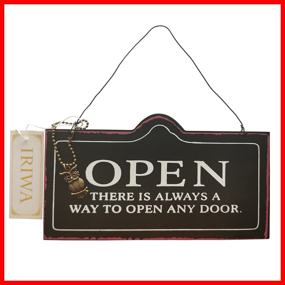 IRIWA ドアプレート オープン クローズ お店看板 ビンテージ風 木製 OPEN CLOSED 両面 アンティーク 吊り下げ かんばん ベージュ ブラック二色 (ブラック)