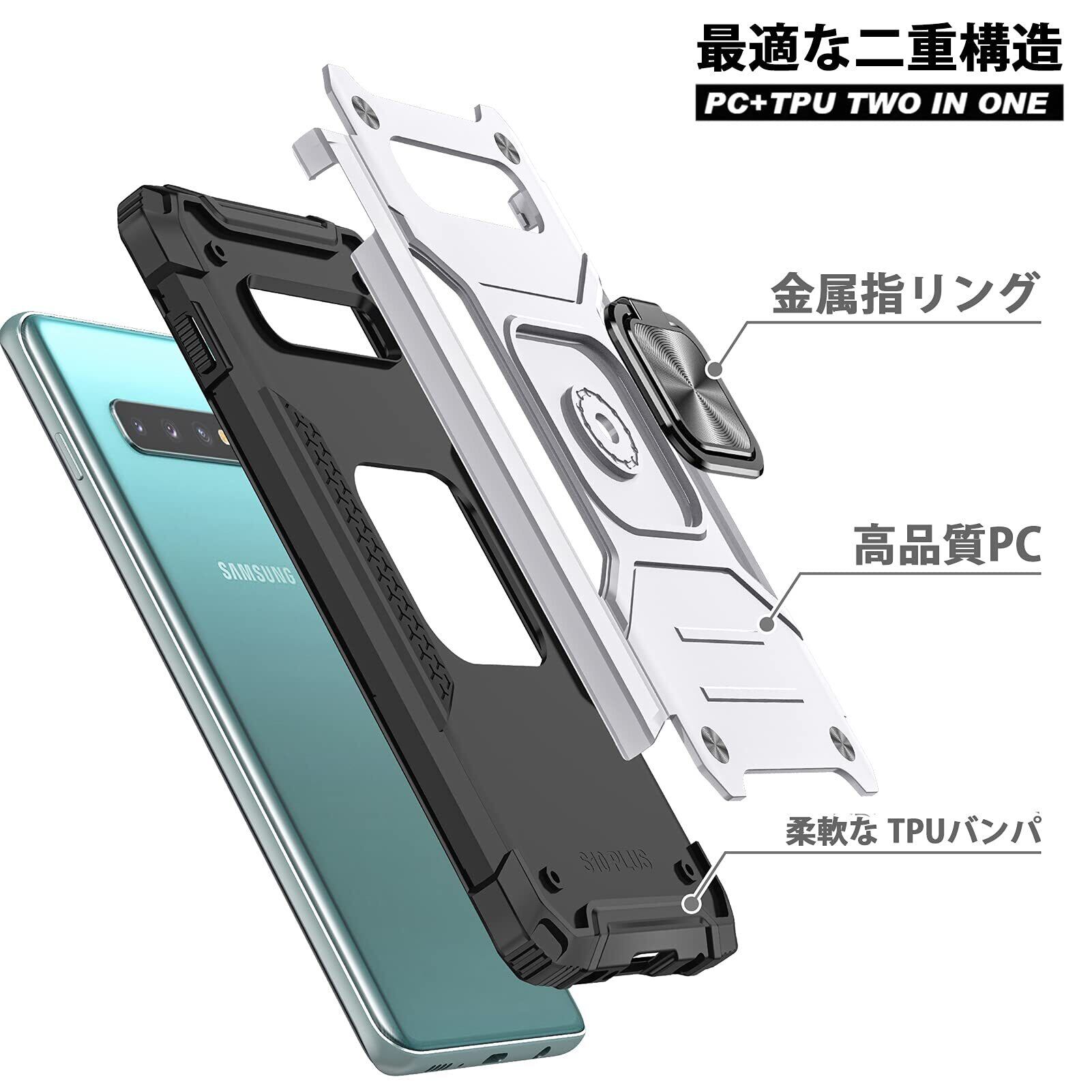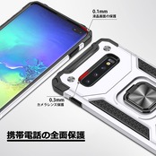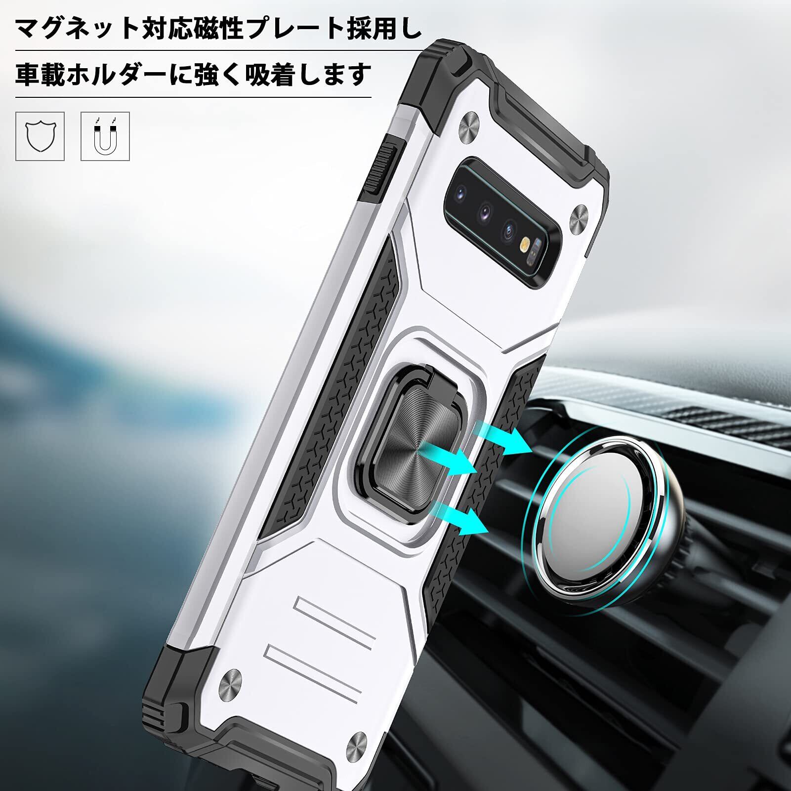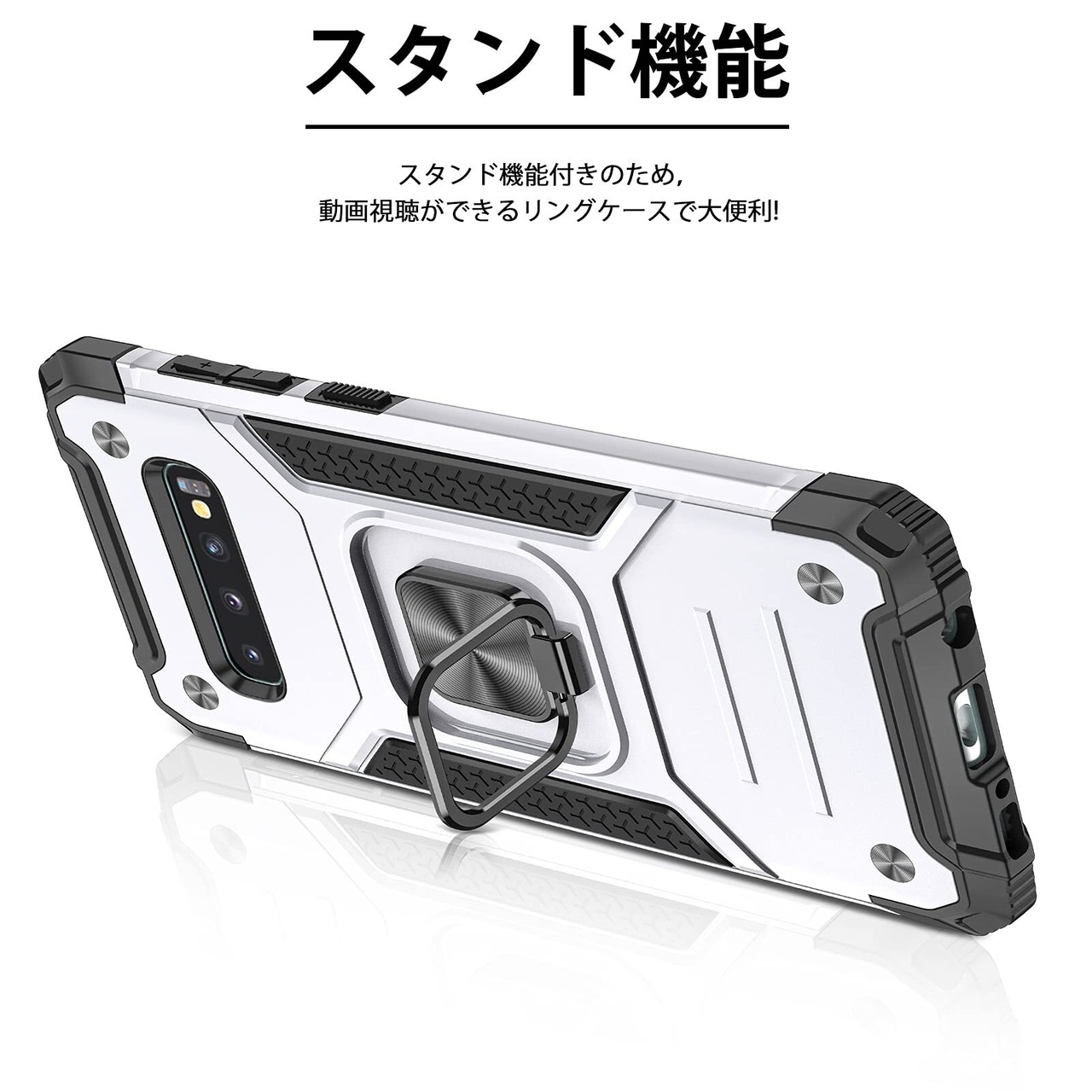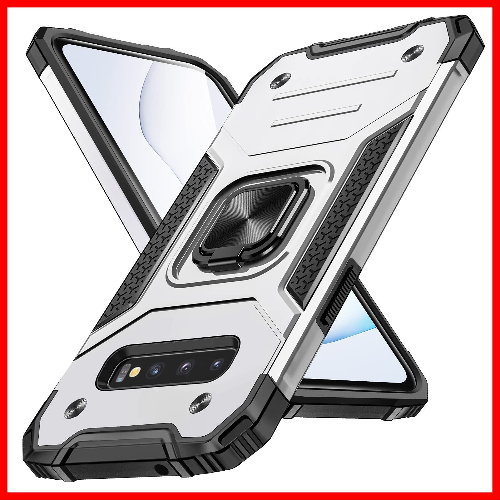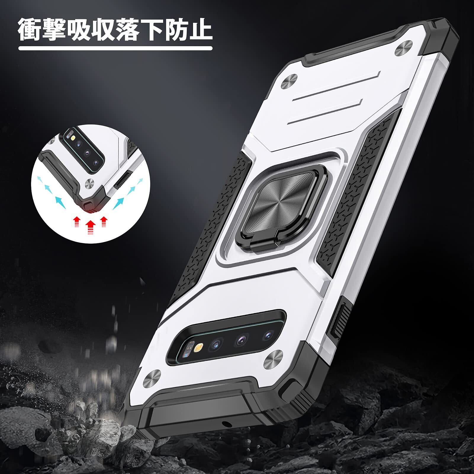 Galaxy S10 plus ケースリング 耐衝撃 衝撃吸収 米軍MIL規格取得 レンズ保護 TPU+PC リングつき 指紋防止 車載ホルダー対応 スタンド機能 防塵 薄型 軽量 落下防止 擦り傷防止 サムスン Galaxy S10 plus 携帯カバー 銀C82-00314