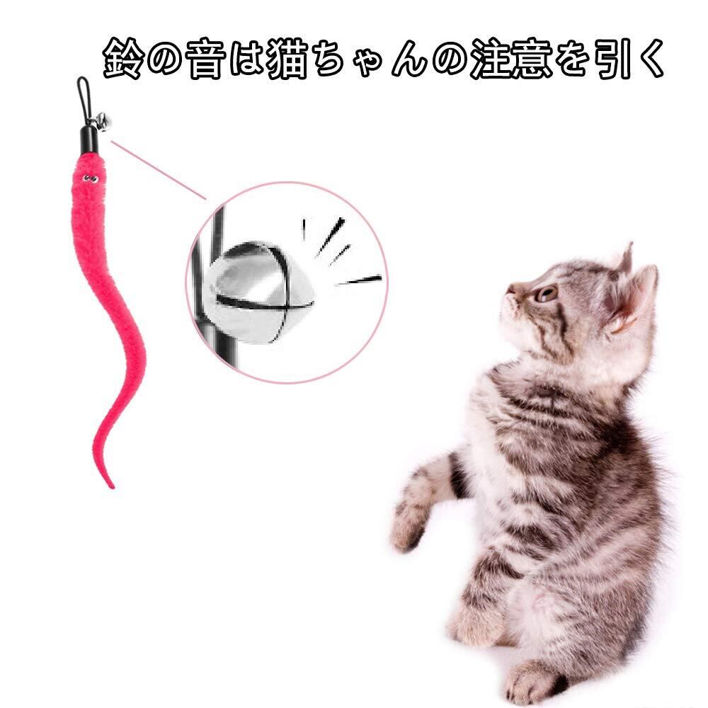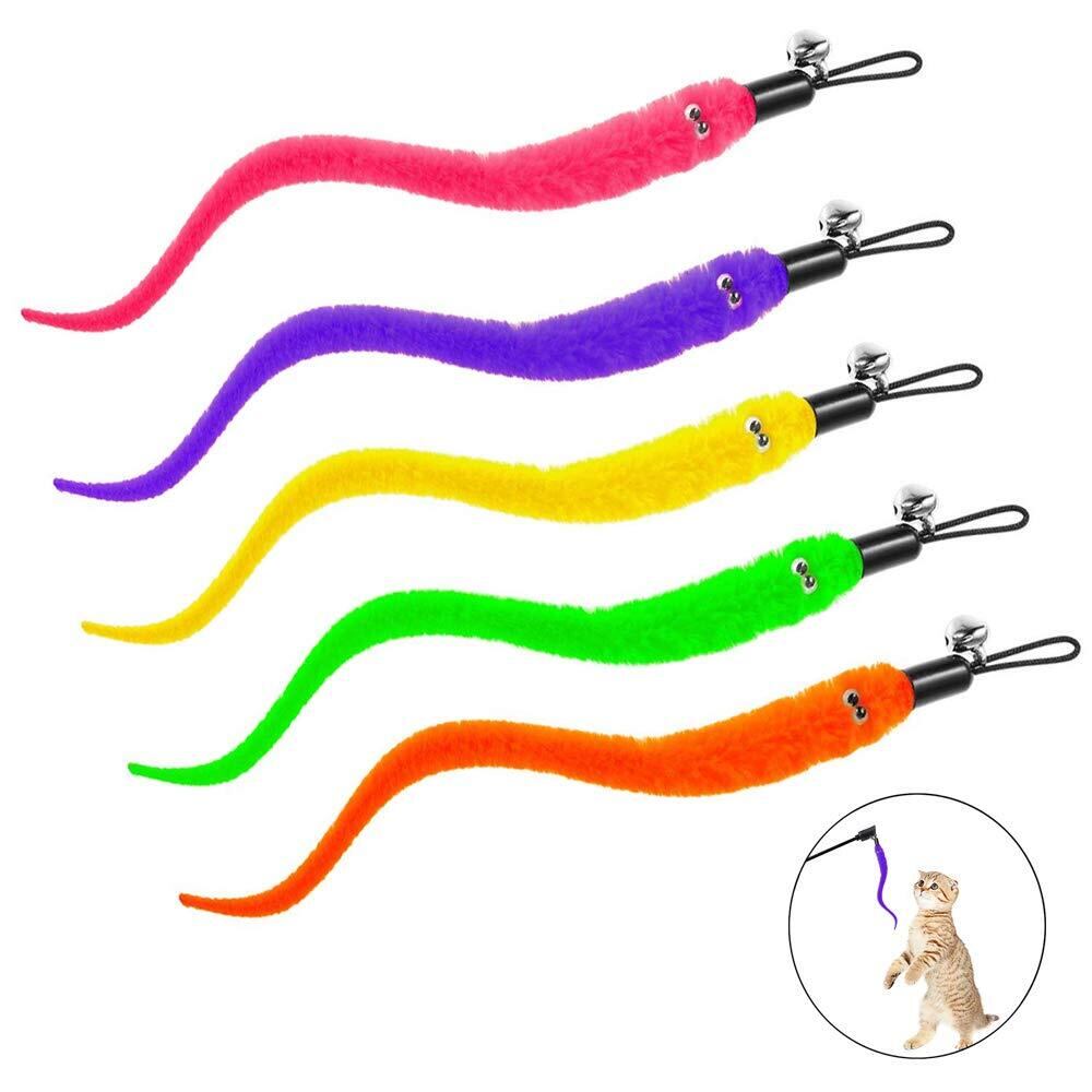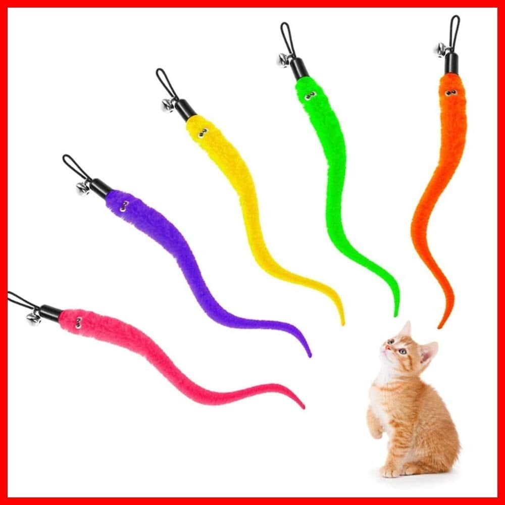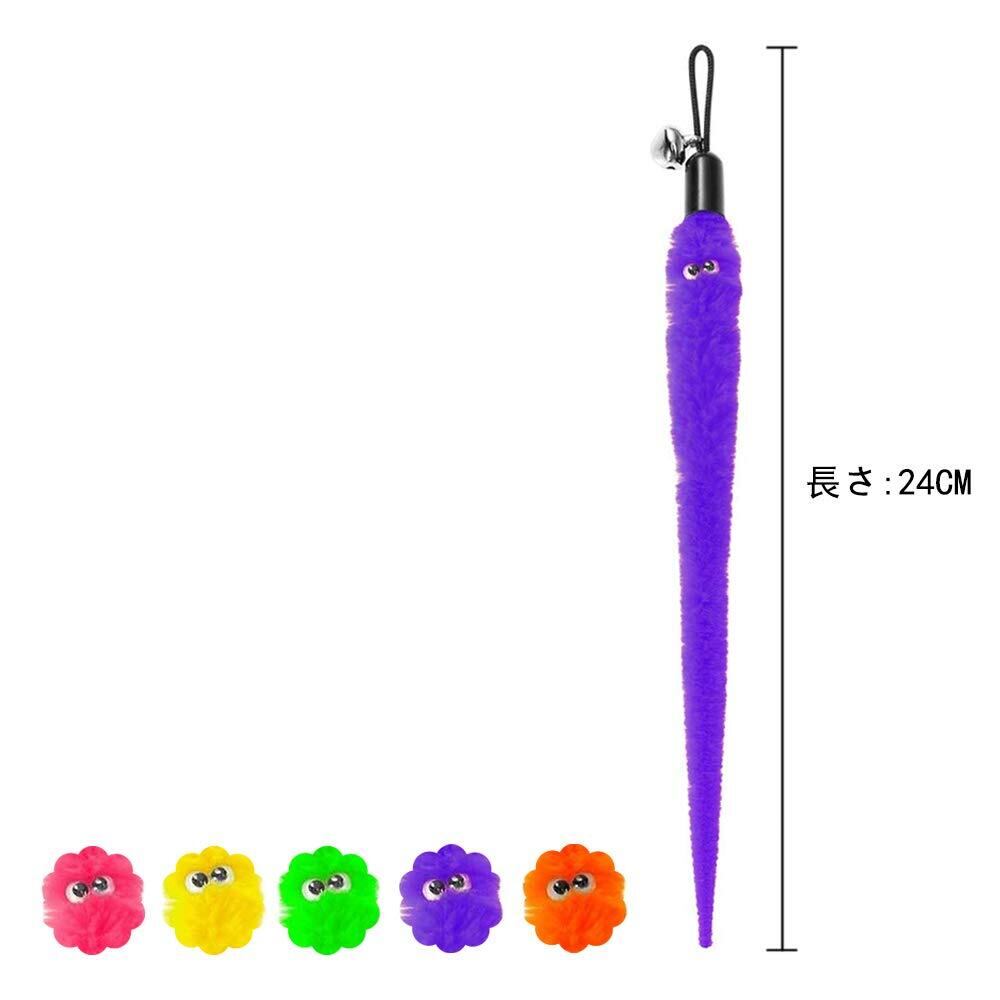 popluxy 猫じゃらし 羽のおもちゃ 猫おもちゃ 天然鳥の羽棒 鈴付き 交換用 毛虫 ぬいぐるみ 猫のお好み 5本入