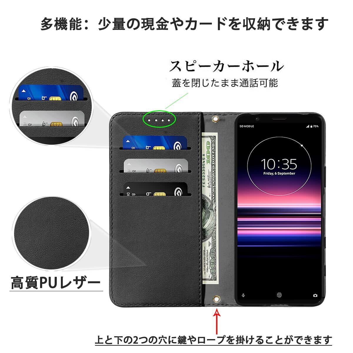 Xperia 5 III ケース 手帳型 高質PUレザー Xperia 5 III カバー SO-53B ケース SOG05 ケース エクスペリア5 iii ケース 携帯カバー 耐衝撃 SOG05 皮革 内蔵マグネット開閉式 ベルトなし スマホケース おしゃれ カードポケット スタンド機能 便利 スプラット同梱 携帯ケース ブラック | hananoki