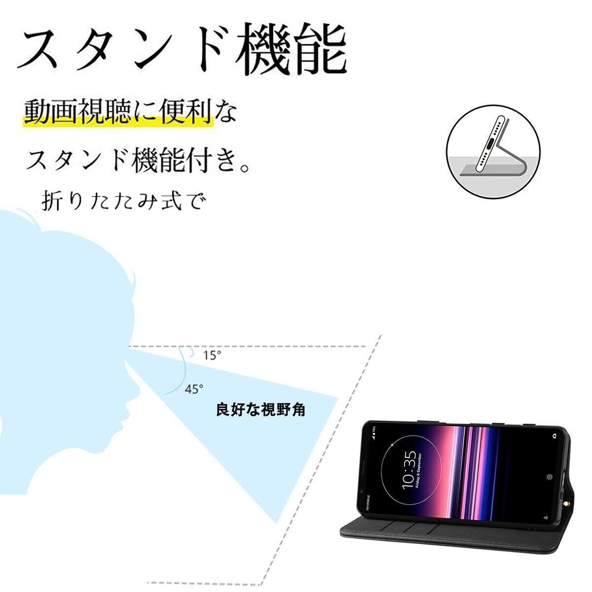 Xperia 5 III ケース 手帳型 高質PUレザー Xperia 5 III カバー SO-53B ケース SOG05 ケース エクスペリア5 iii ケース 携帯カバー 耐衝撃 SOG05 皮革 内蔵マグネット開閉式 ベルトなし スマホケース おしゃれ カードポケット スタンド機能 便利 スプラット同梱 携帯ケース ブラック