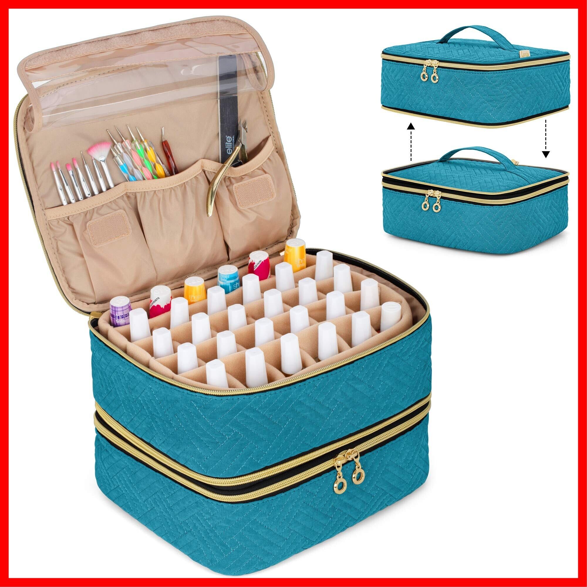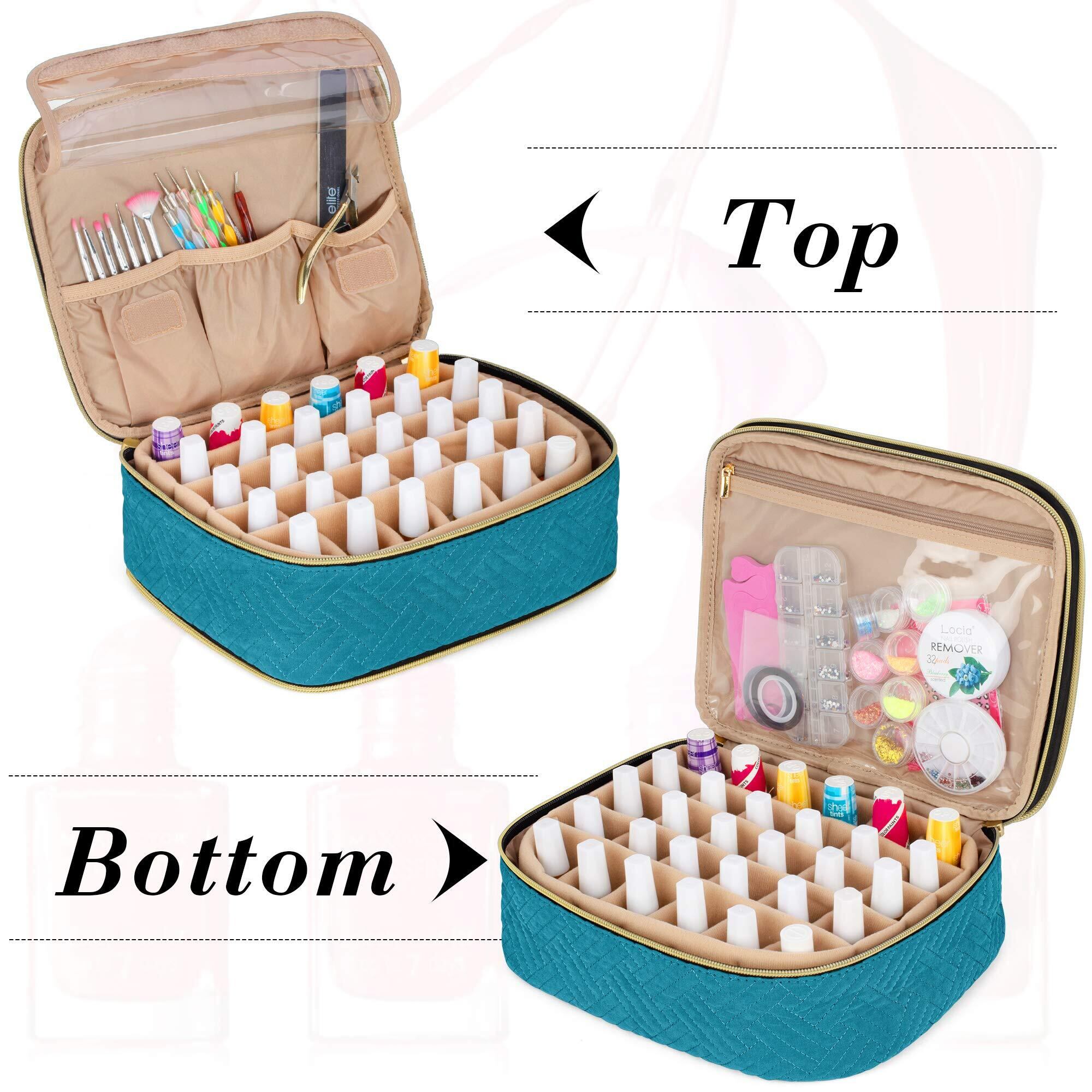 Luxja 取り外し可能な二層式マニキュアケース 60ボトル用 ネイル用品収納ポケット付き ネイルカラー収納ケース ティール