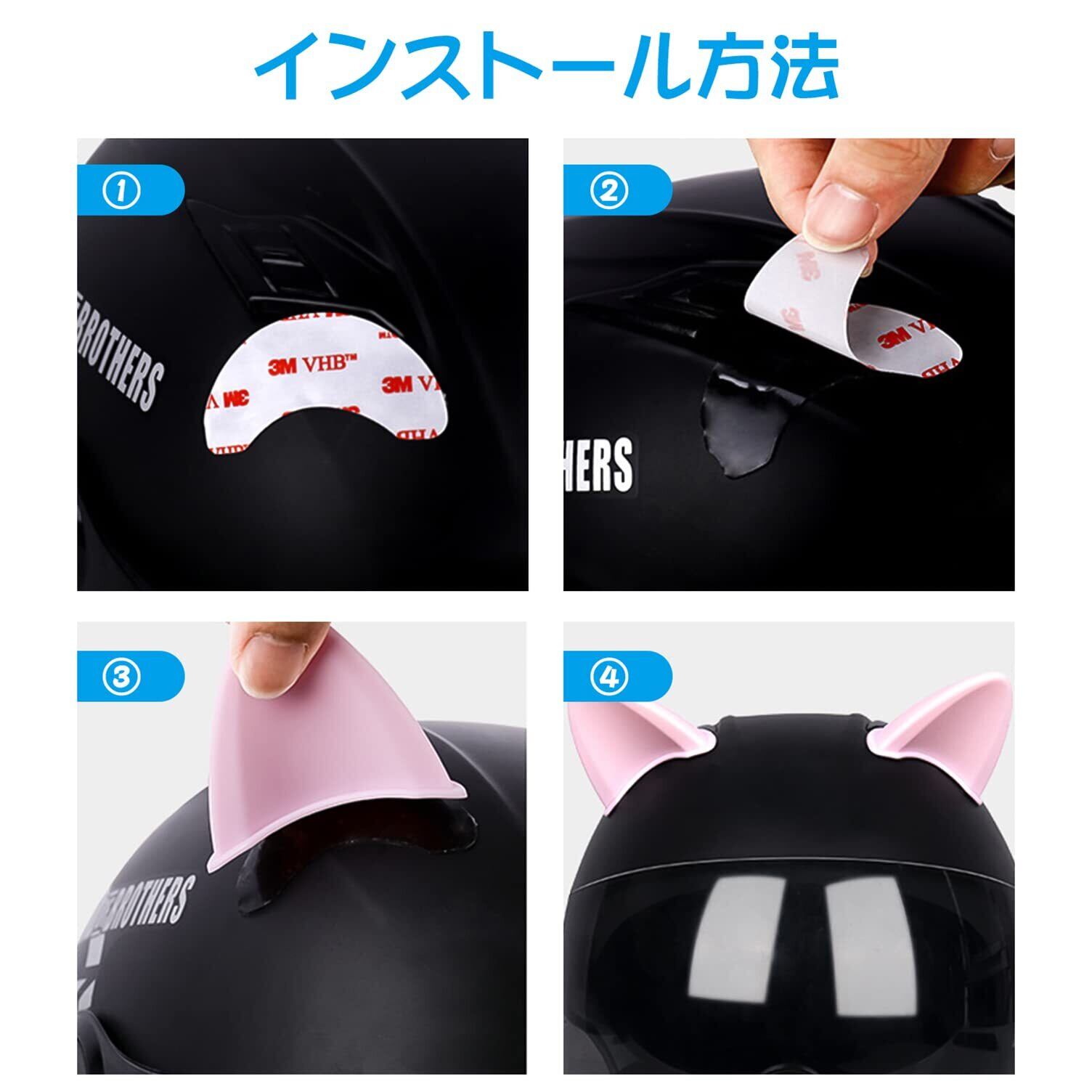 ヘルメット用 猫耳 可愛い 取り付け簡単 ねこみみ 後付け ねこ耳 猫の耳飾り ヘルメット装飾アクセサリー ヘルメットカバーステッカー