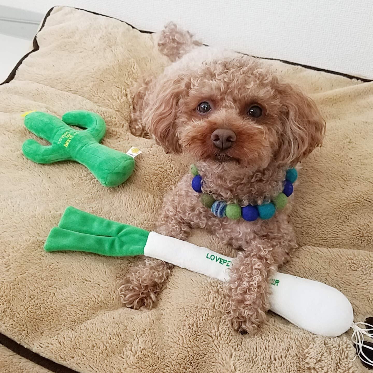 長ネギのペットトイ。カシャカシャキュッキュと音がなります。