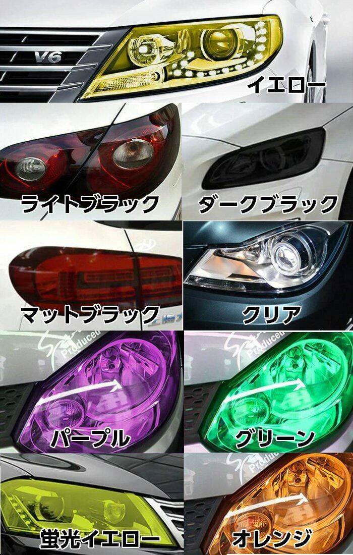 ヘッドライトやテールライトのドレスアップ用レンズフィルム 当店オリジナルブランド商品です。 ドレスアップだけでなく保護用としても活躍 曲面はヒートガン等で温めるとよく伸びるので貼り易いです。 裏面粘着シート 保護フィルム付き(マットブラック、ラメ入りを除く)