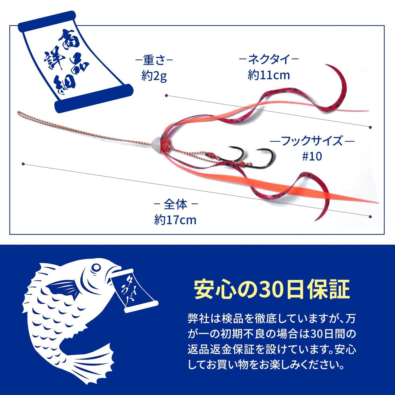 【極細タイラバネクタイ】 水抵抗を極限まで低減し、深海タイラバ釣行で素早くポイントへ到達! 繊細なシルエットと微波動で真鯛の警戒心を解き、低活性時でもバイトを誘発します。深場でも抜群の存在感を発揮!