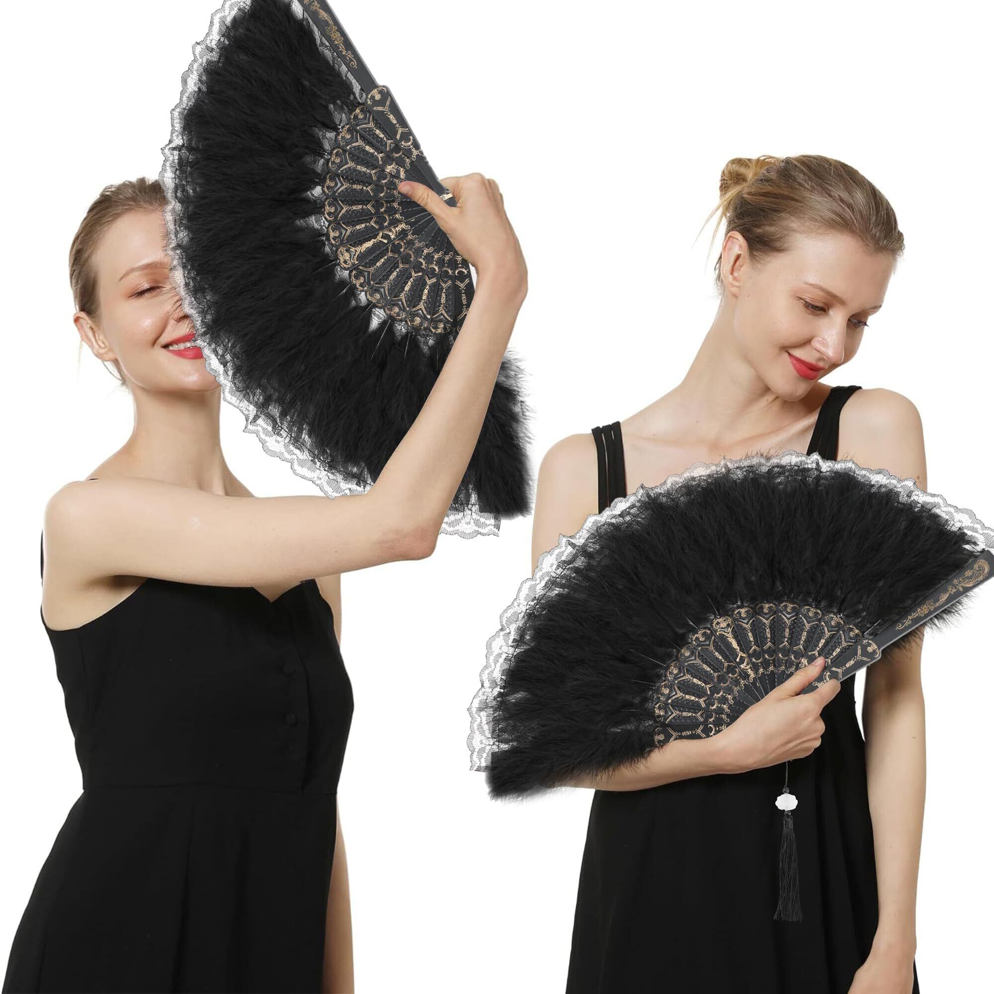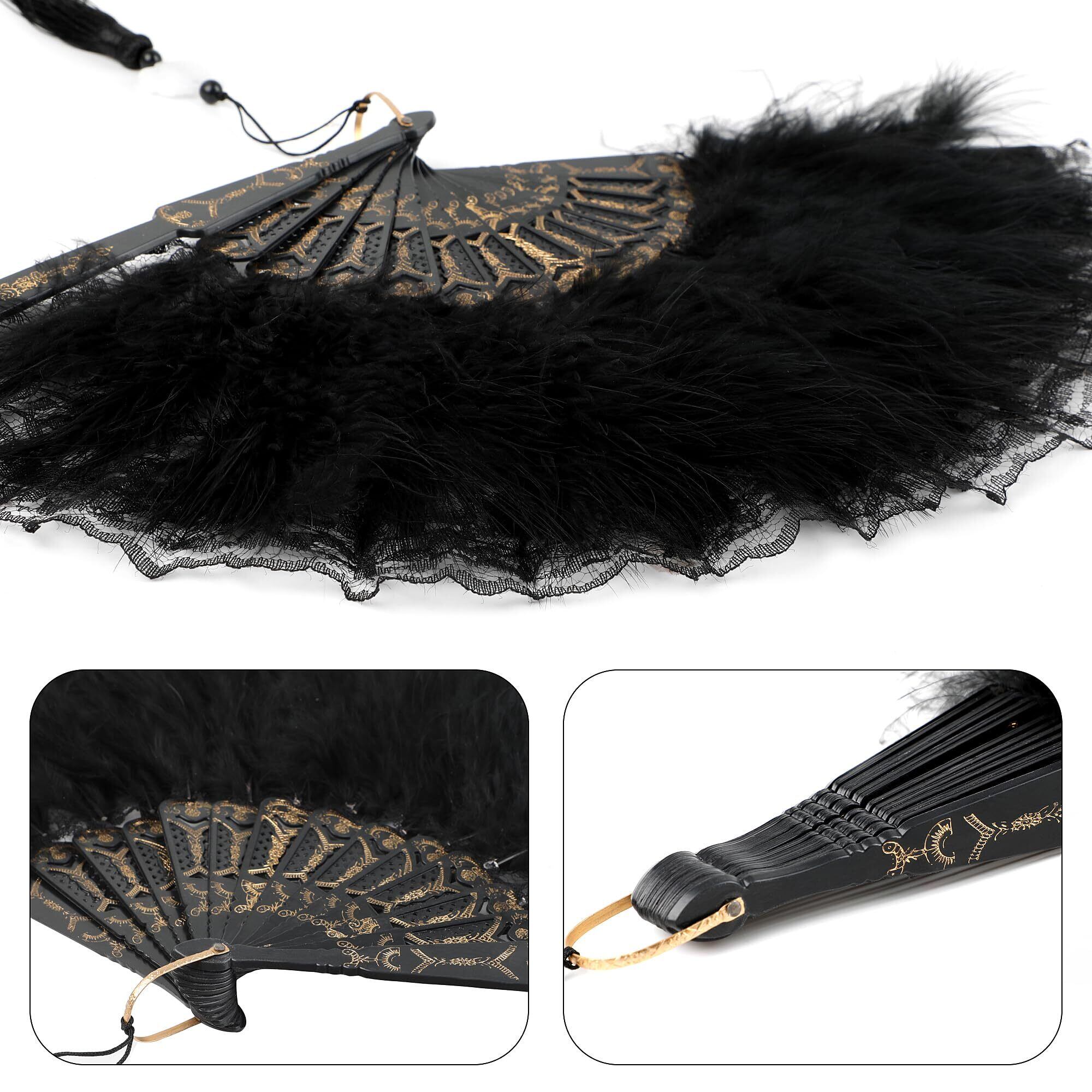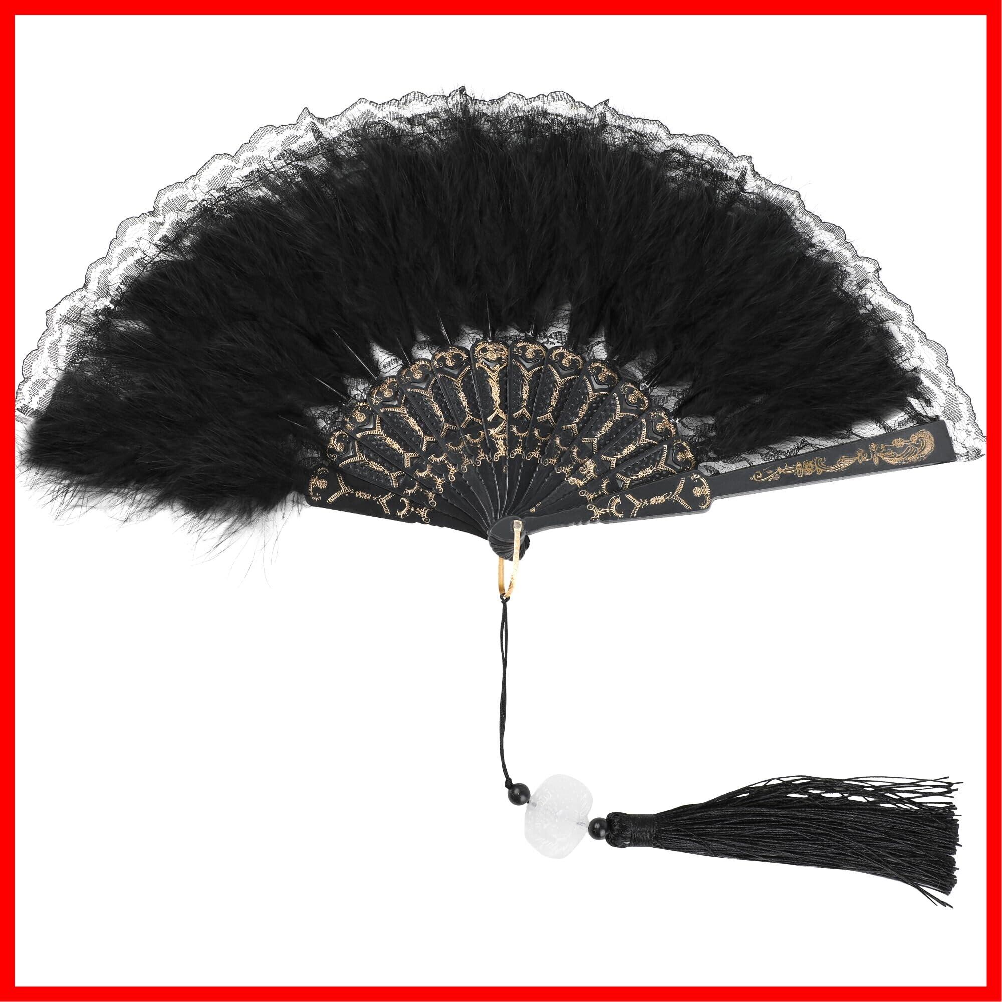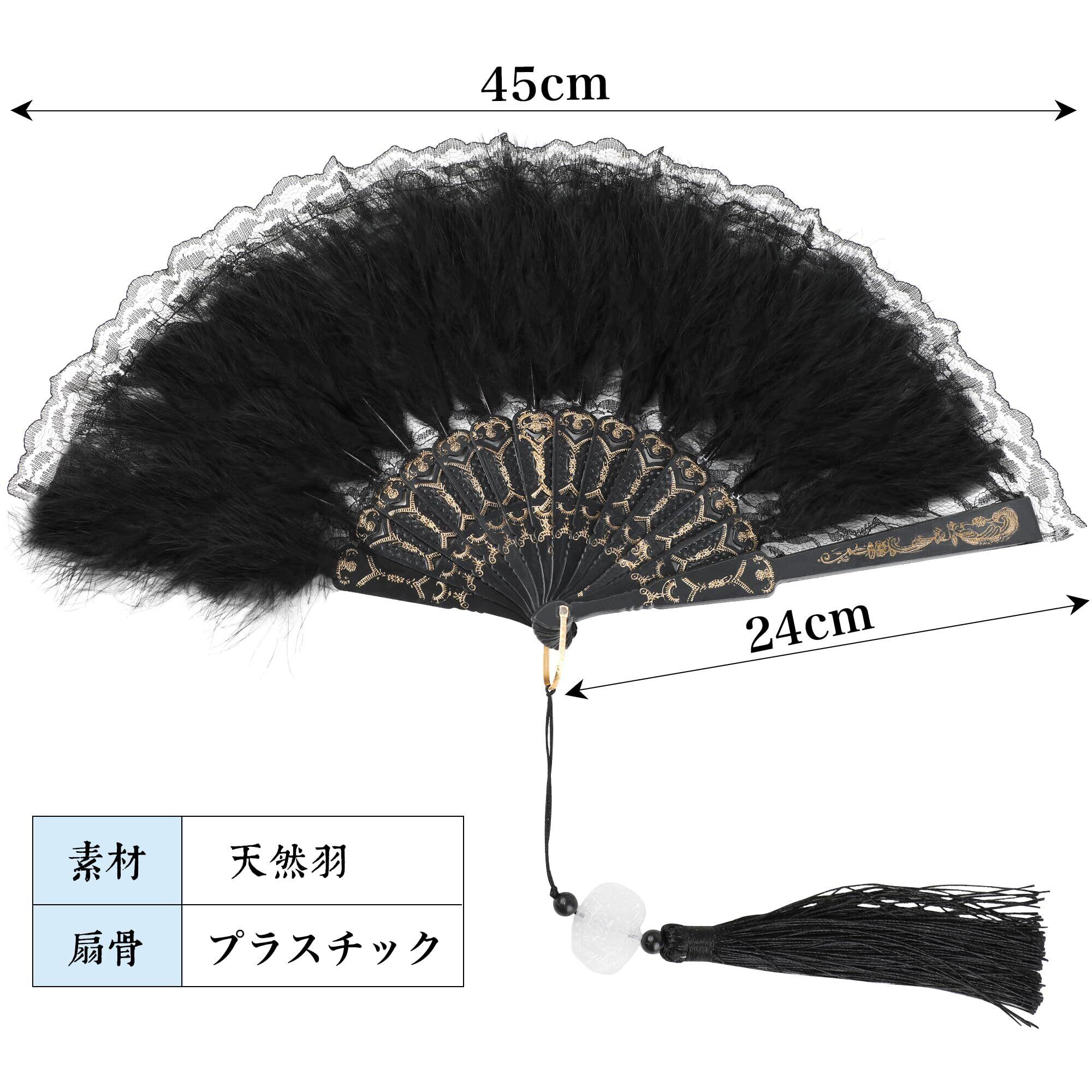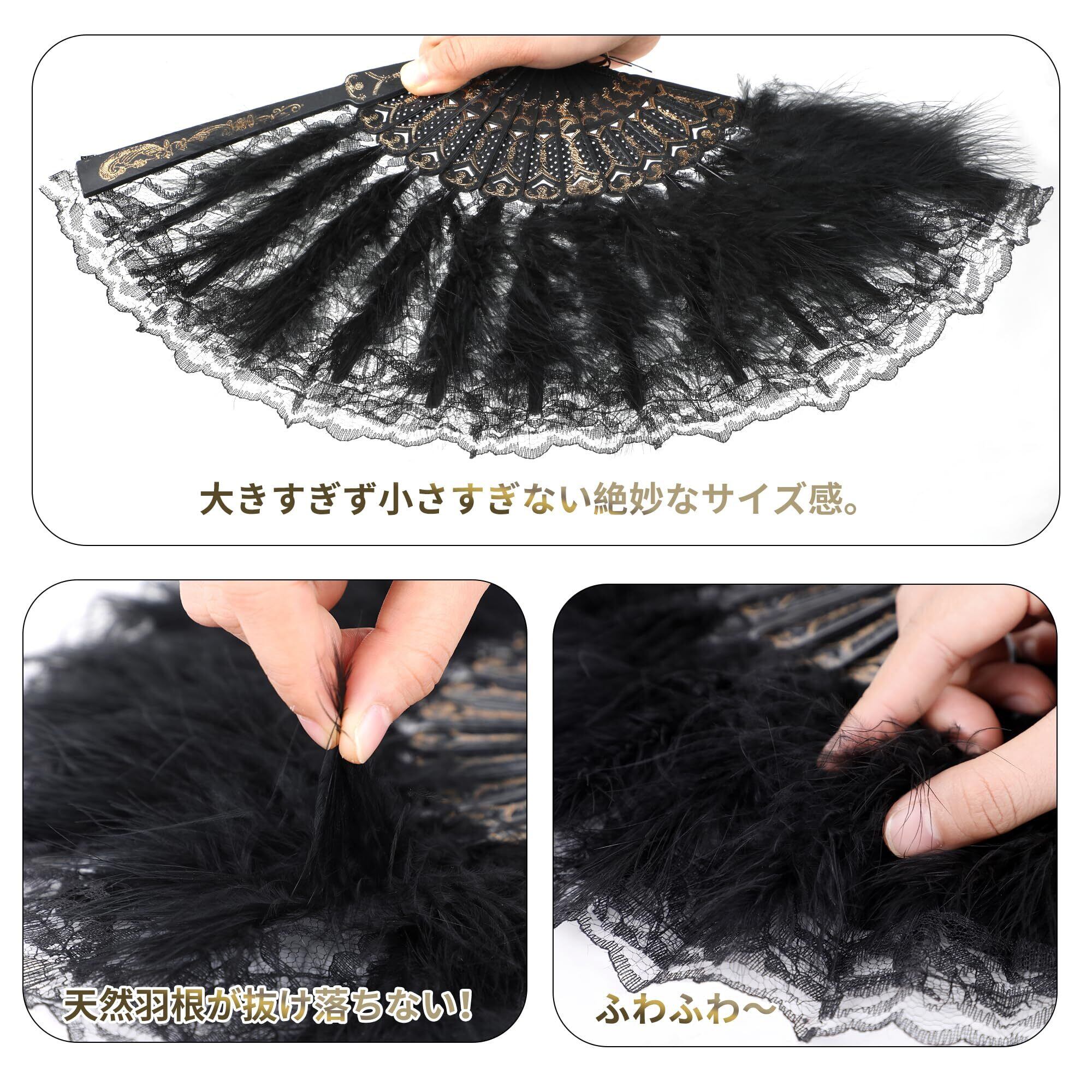 DERAYEE コスプレジュリ扇子 レース ダンス 踊り 仮装 もふもふ コスプレ小物 仮装大会 パーティー 仮面舞踏会 新年会 お祭り 学園祭 文化祭 (ブラック)