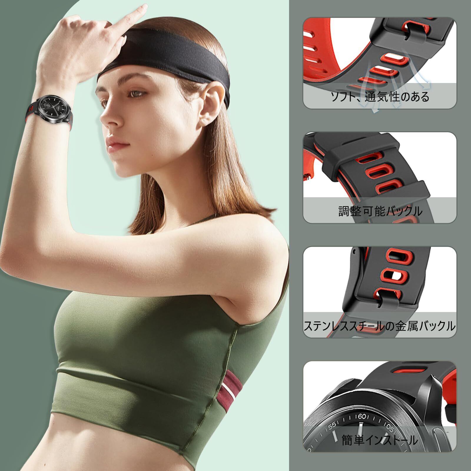 [ZoRoll] バンド【22ミリ対応】 シリコンバンド 22 mm 20 mm腕時計バンド スポーツストラップ スマートウォッチバンド 22ミリ 20ミリ 交換ベルトソフト 防水 快適性 簡単調整 簡単クリック 時計バンド 超軽量 替えベルト男女兼用 (22mm対応 ブラック+レッド)
