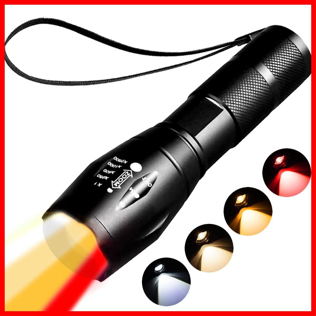 YZYOE赤ランプ懐中電灯:赤ランプ懐中電灯は夜間活動のために設計されている。 人間の目は赤い光の範囲に最も敏感で、しかし動物は赤色LED懐中電灯に驚くことはありません、 だからこの赤い光は暗闇の中で動物を見つけるのに非常に役立ちます。 豚やオオカミ、キツネのように赤い光にはあまり敏感ではありませんが、 だから邪魔しないで見つけることができます。 黄灯と琥珀灯:柔らかい光はまぶしくなく、長時間の観察に適しています。 写真補光灯としても使用でき、非常に効果的です。