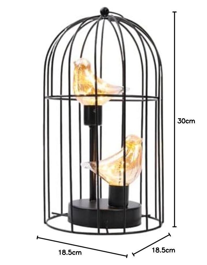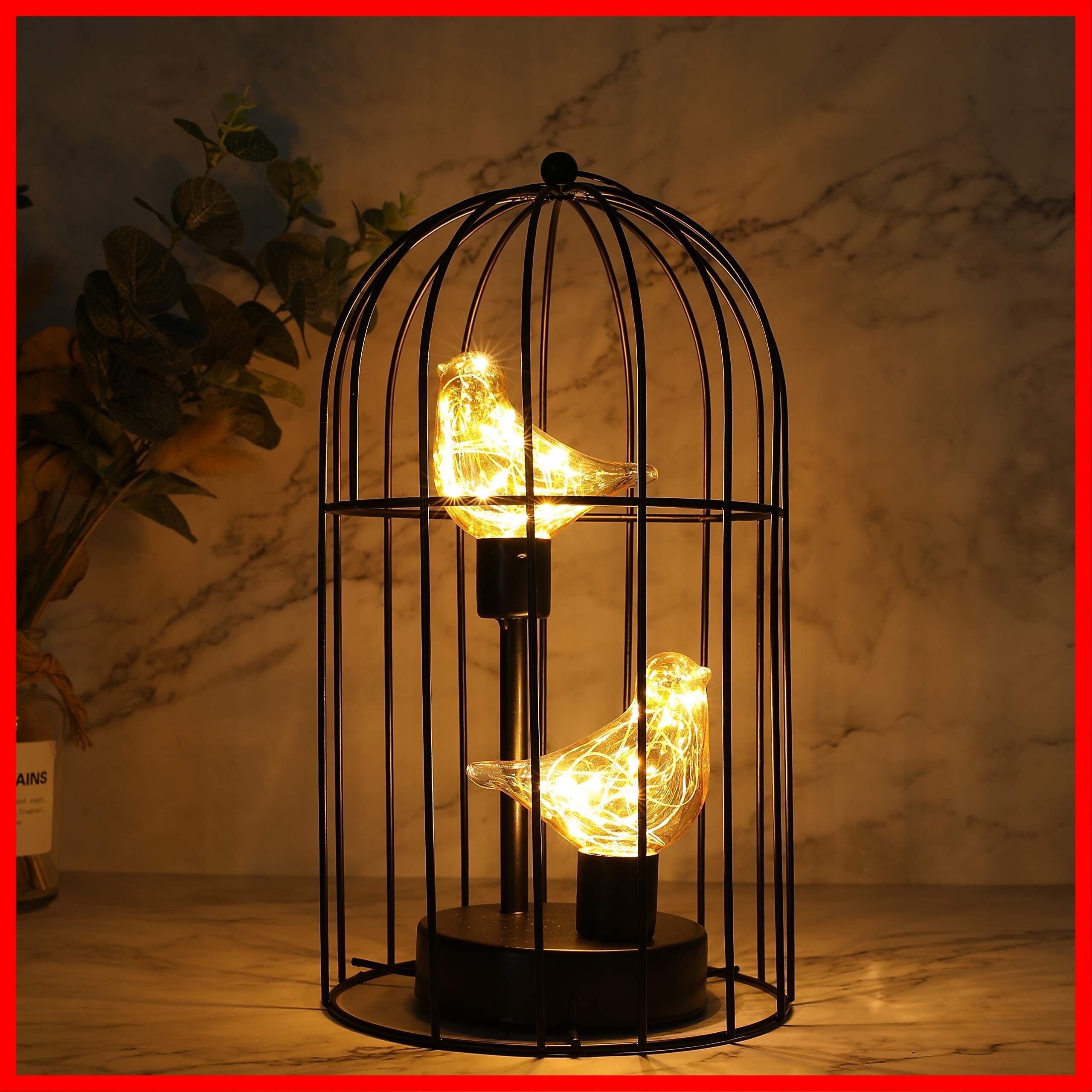 JHY DESIGN 電池式テーブルランプ 高さ30cm 置き型 かわいい鳥かごデザイン LEDフェアリーライト付き おしゃれ 間接照明ライト 装飾ランプ 部屋 オフイス 和風玄関 バーなど おしゃれな クリスマス インテリア 誕生日 結婚式 パーティー イベント(ブラック)