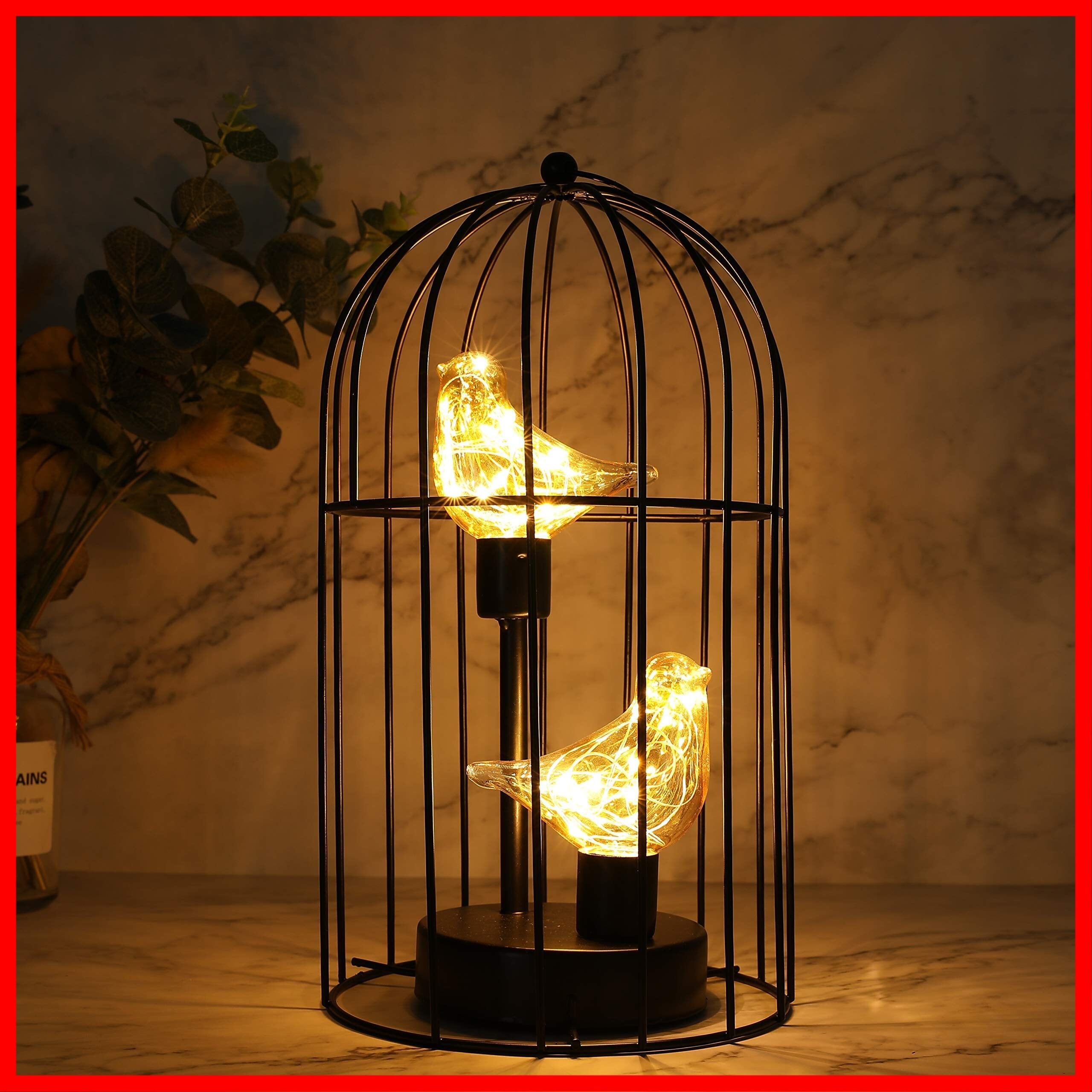 JHY DESIGN 電池式テーブルランプ 高さ30cm 置き型 かわいい鳥かごデザイン LEDフェアリーライト付き おしゃれ 間接照明ライト 装飾ランプ 部屋 オフイス 和風玄関 バーなど おしゃれな クリスマス インテリア 誕生日 結婚式 パーティー イベント(ブラック) | hananoki