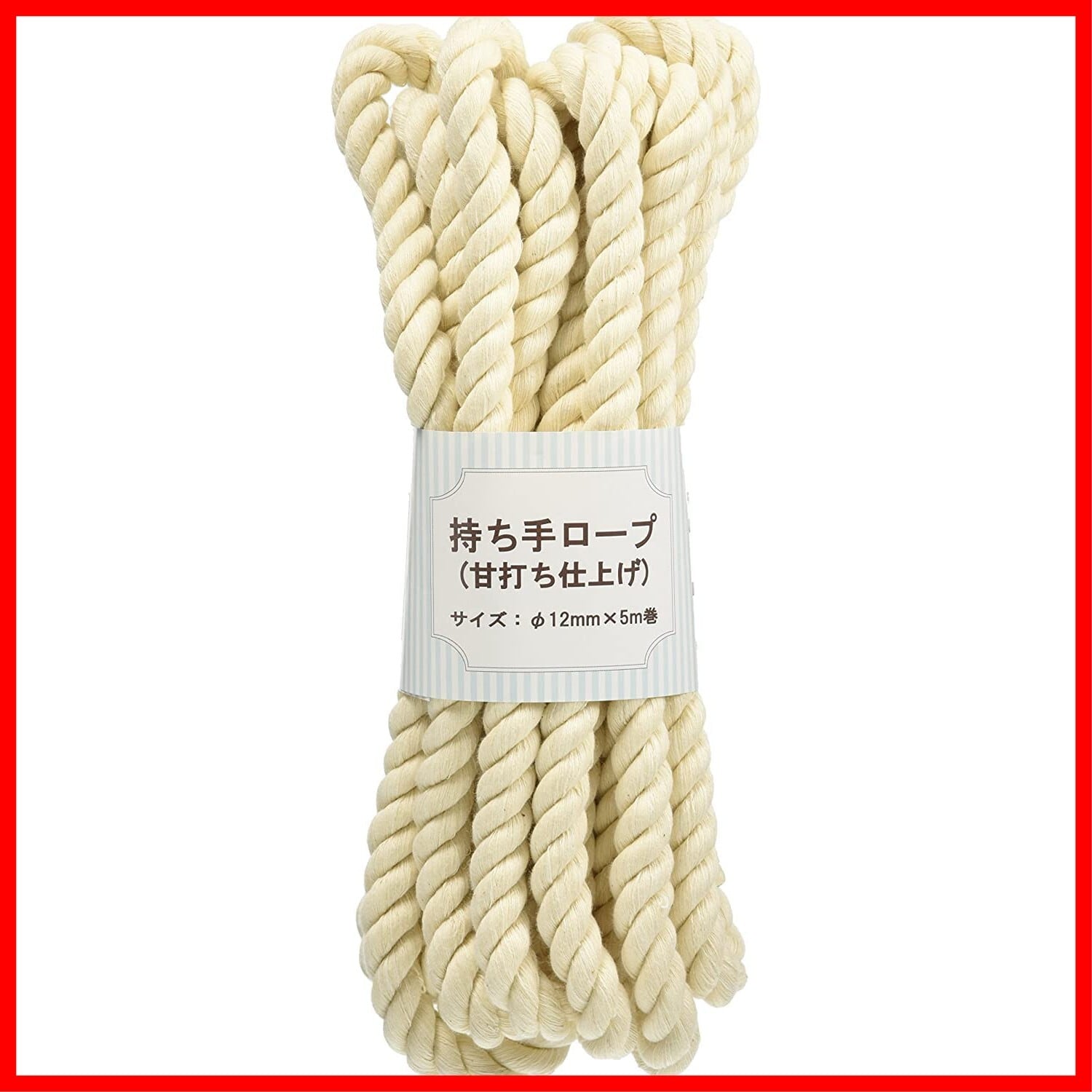 日本紐釦貿易(Nippon Chuko) 持ち手ロープ 甘打ち仕上げ 生成 12mm×5m巻 手芸 綿 多用途ロープ アウトドア ペット用 S3-1