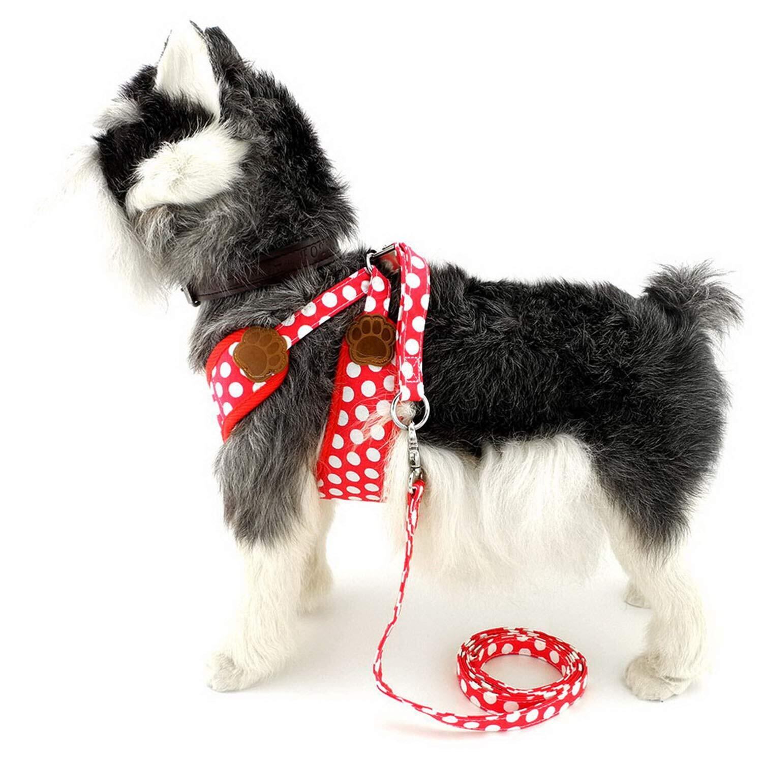 ドット柄と肉球マークがとてもかわいいハーネスです。あなたの犬がよりスタイリッシュ&可愛いになります
