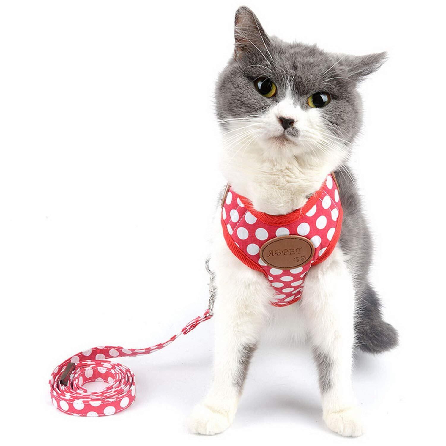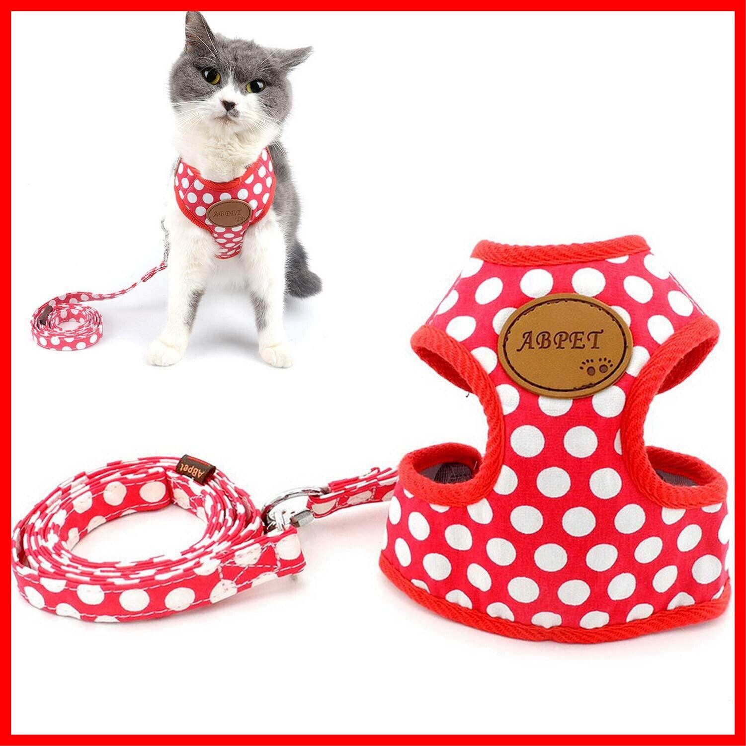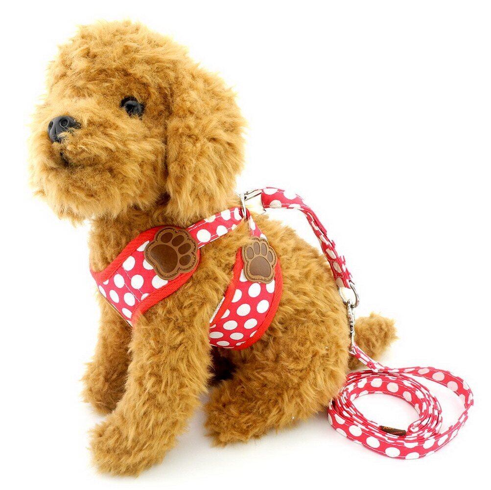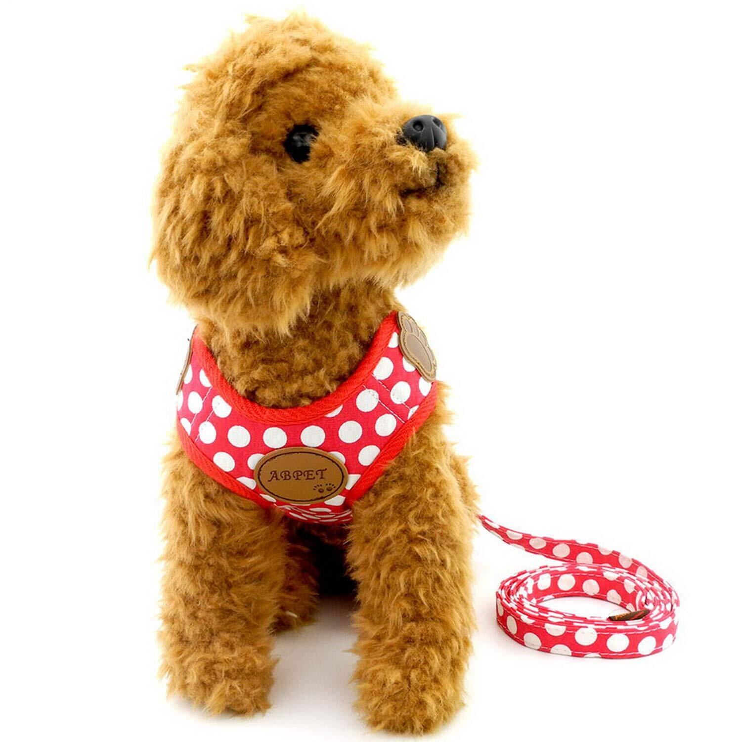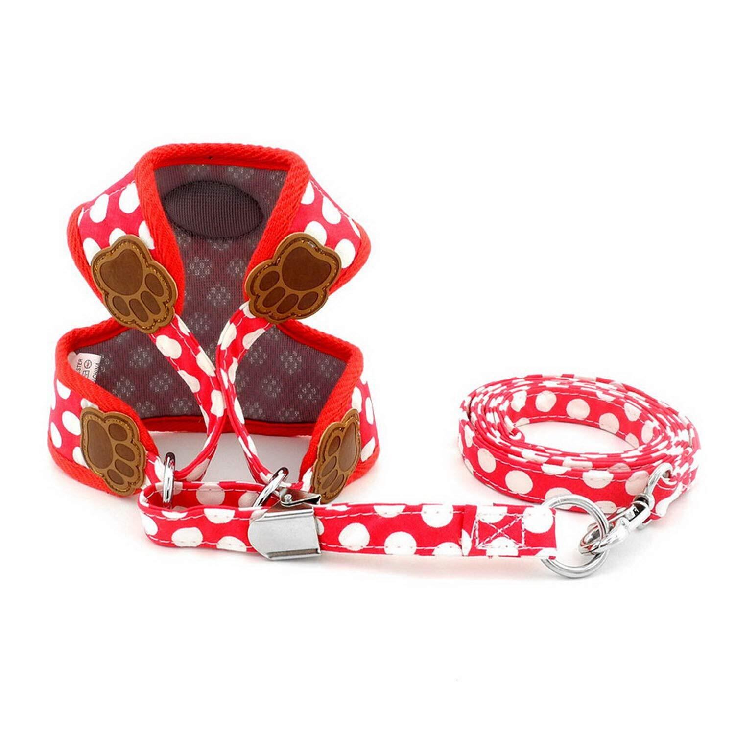 ZUNEA 犬用 ハーネス リード セット 可愛い ドット柄 ソフトメッシュ 胴輪 チワワ用 散歩 ペット用品 ドッグウェア 小型犬用 レッド, L
