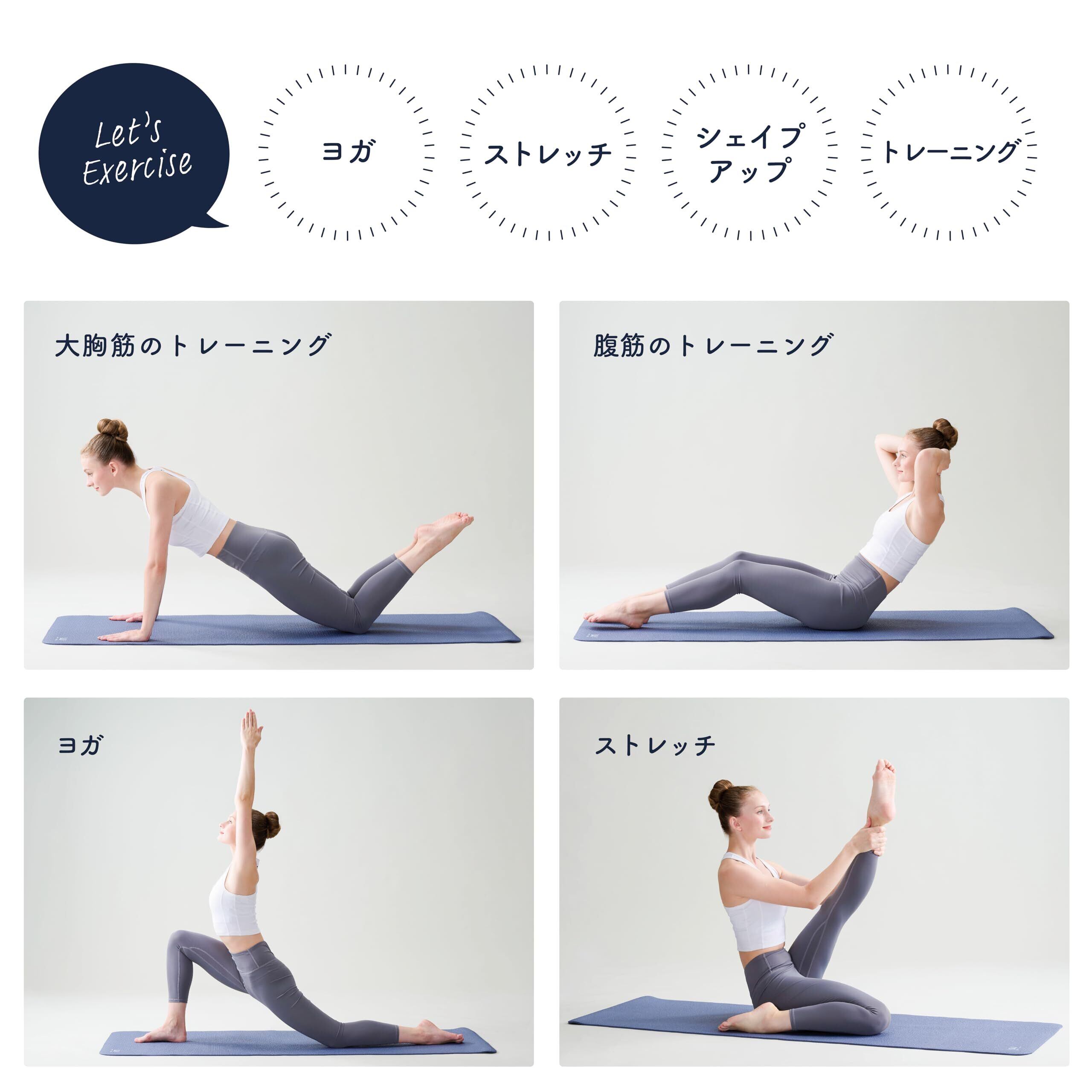 【身体を守るヨガマット】ヨガマットは硬い床から骨や皮膚など身体を守るだけでなく、運動の衝撃からも身体を守ってくれます。また、ヨガの他にも、ストレッチやトレーニングなど自宅でさくっと運動したい方の運動のサポートにも役立ちます。