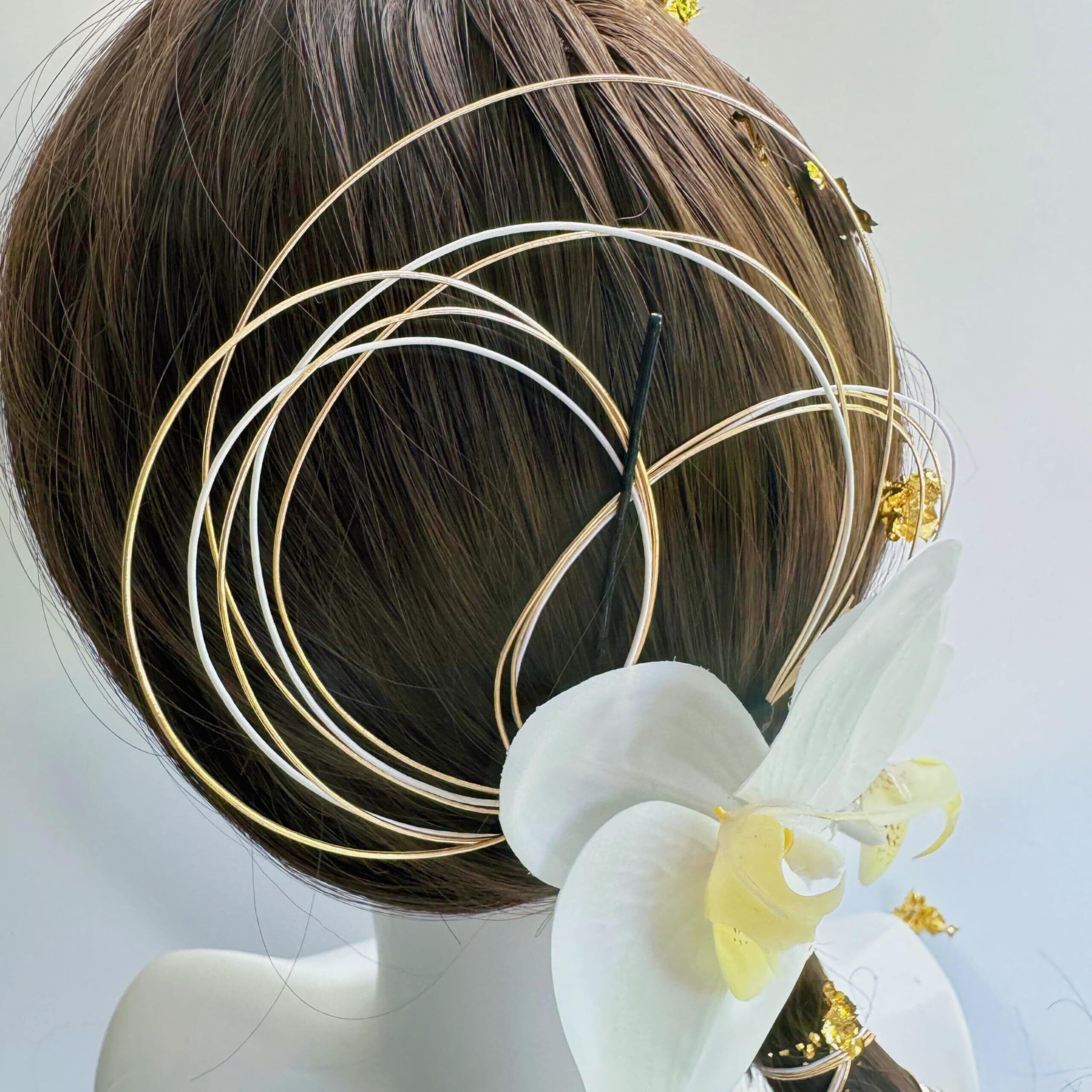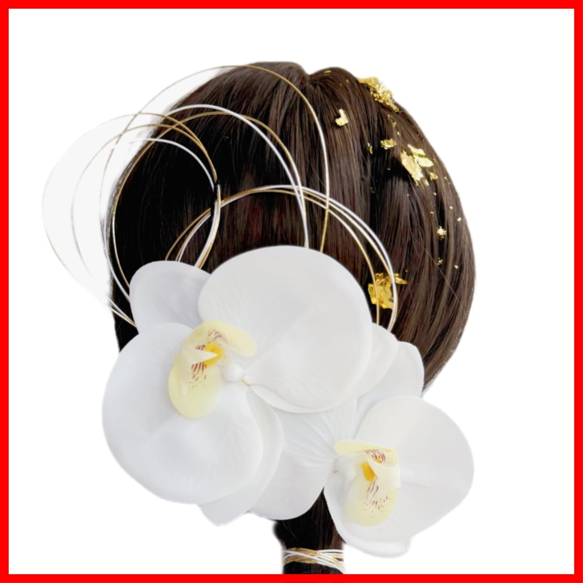 胡蝶蘭 髪飾り 和装 成人式 ボブ 浴衣 振袖 編みおろし ヘアアクセサリー 結婚式 袴 着物 髪留め 成人 式 白 シロ ホワイト 造花 金箔ヘア用 水引き 振り袖 フルセット 胡蝶蘭髪飾り[lalabeauty]