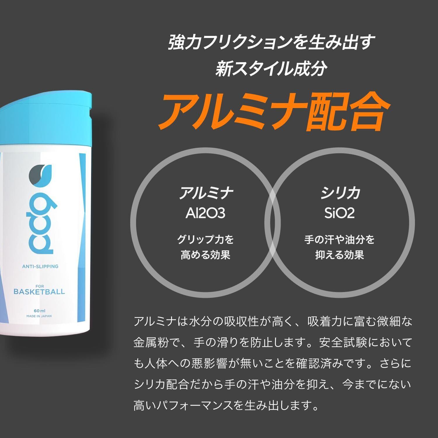 【強力なグリップ力】バスケットボール用に開発しているため、使用時のグリップ力は通常のスプレータイプなどと比べ非常に強力。PD9は松ヤニ成分の代わりにアルミナという微細な金属粉を使用。手にまんべんなく吸着し、手の滑りを防止してくれます。