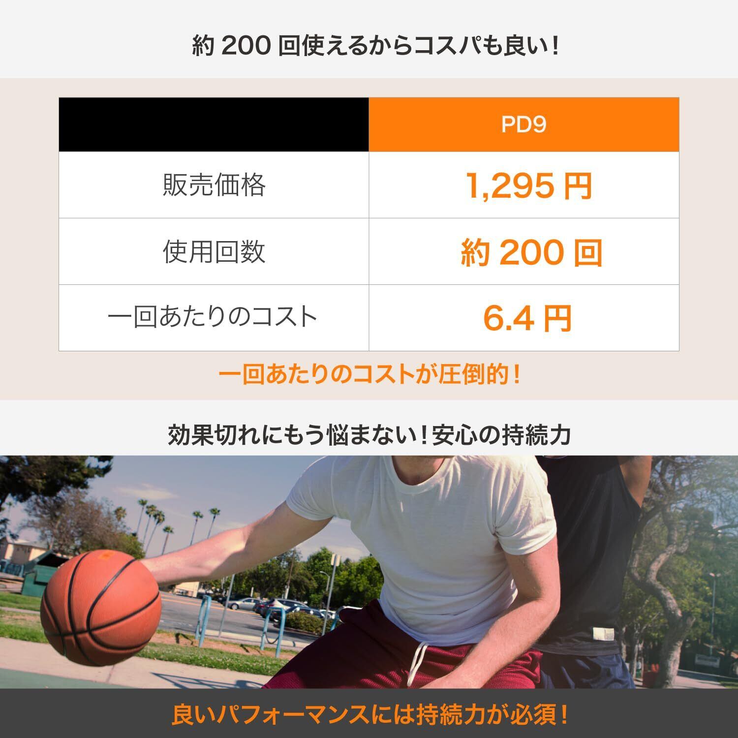 【圧倒的なコスパ】一般的なスプレータイプの商品と比べ、PD9は1本で約200回の使用が可能。持続力も高く、少ない量でも強力なハンドリングを実感いただけます。(使用回数は季節差や個人差があります。)