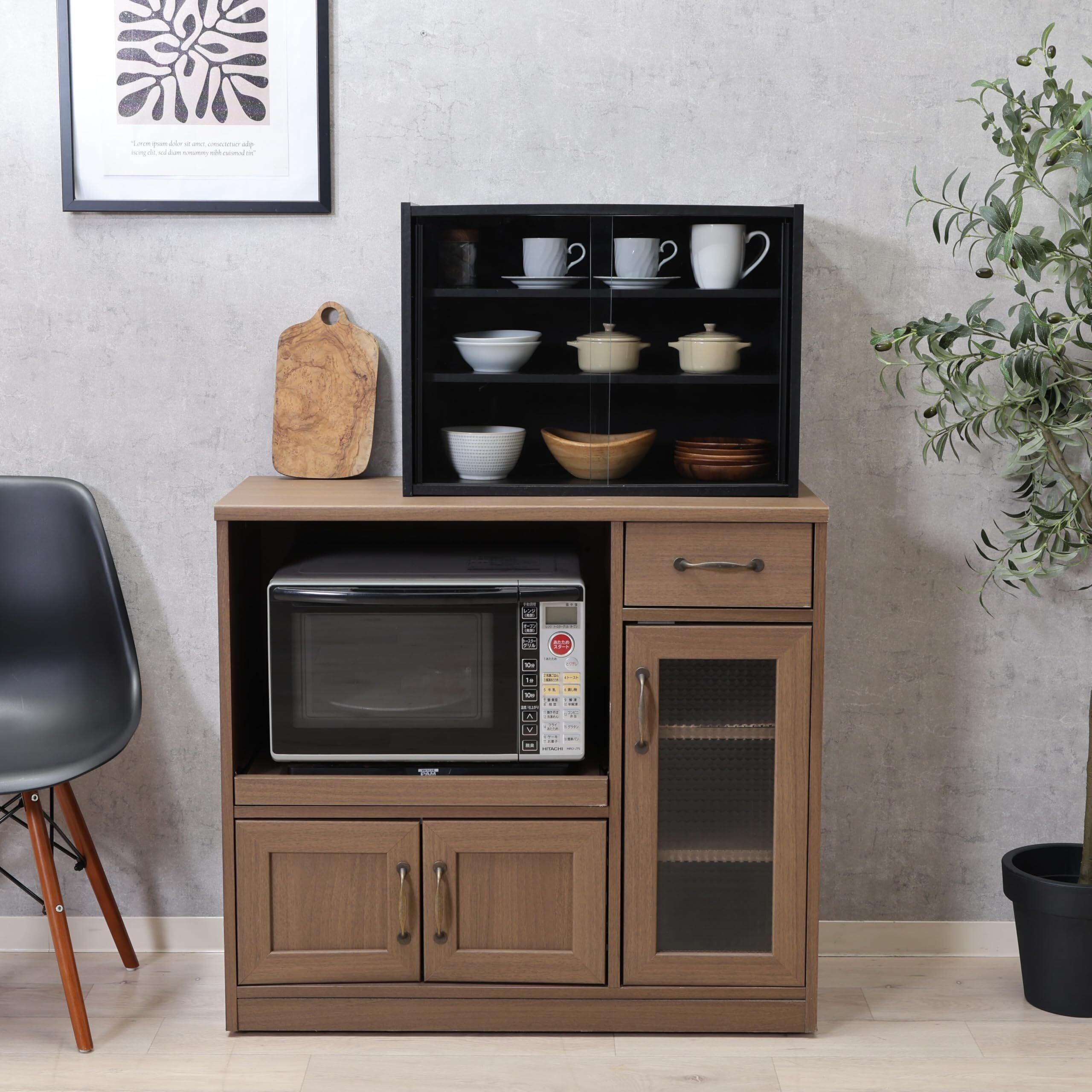 不二貿易 食器棚 キッチン収納 幅60×奥行29×高さ44cm ブラック ガラス扉 可動棚 組立品 99699