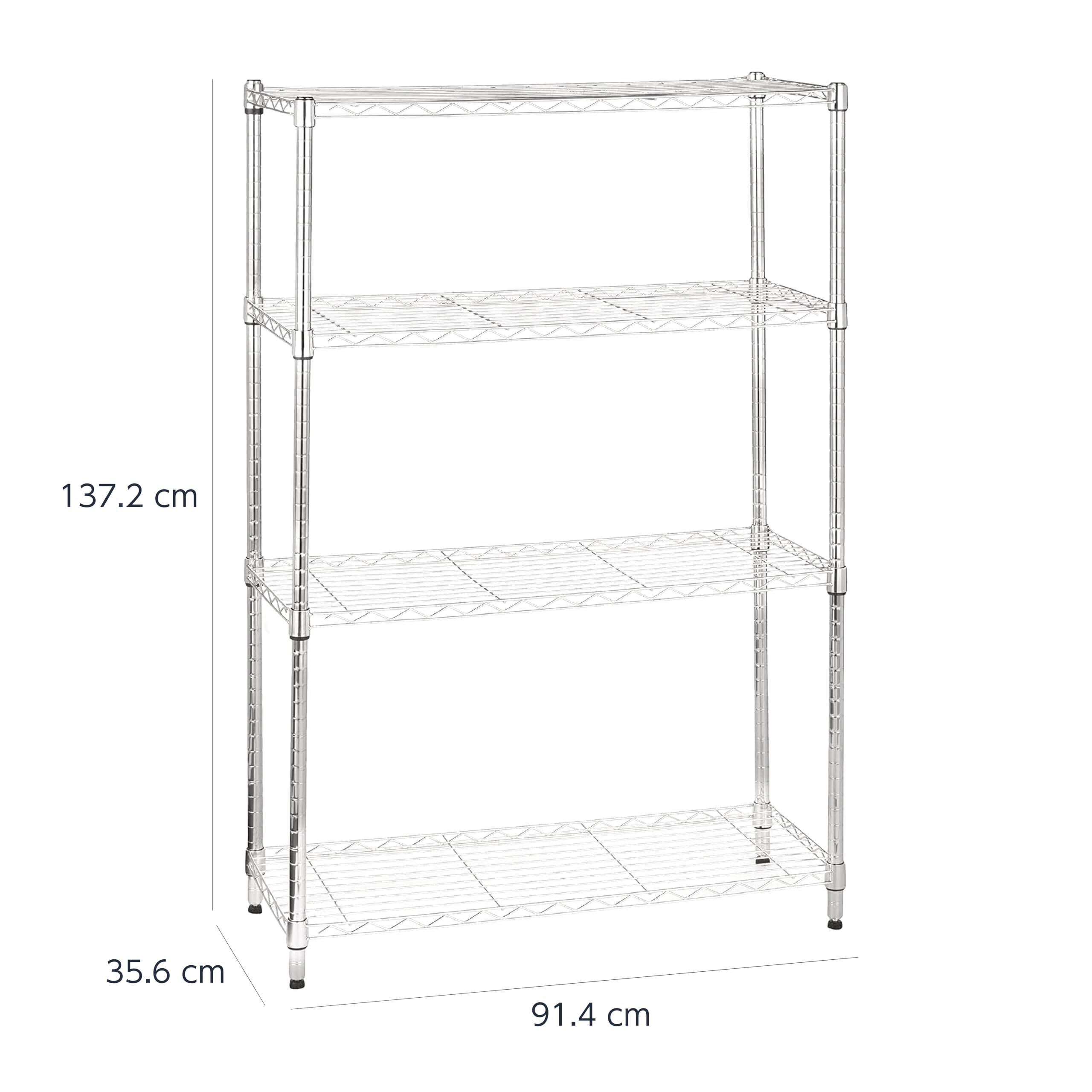 ベーシック 4段スチールラック 棚 メタルラック 耐荷重635kg 幅91.4 x 奥行35.6 x 高さ137.2cm クローム
