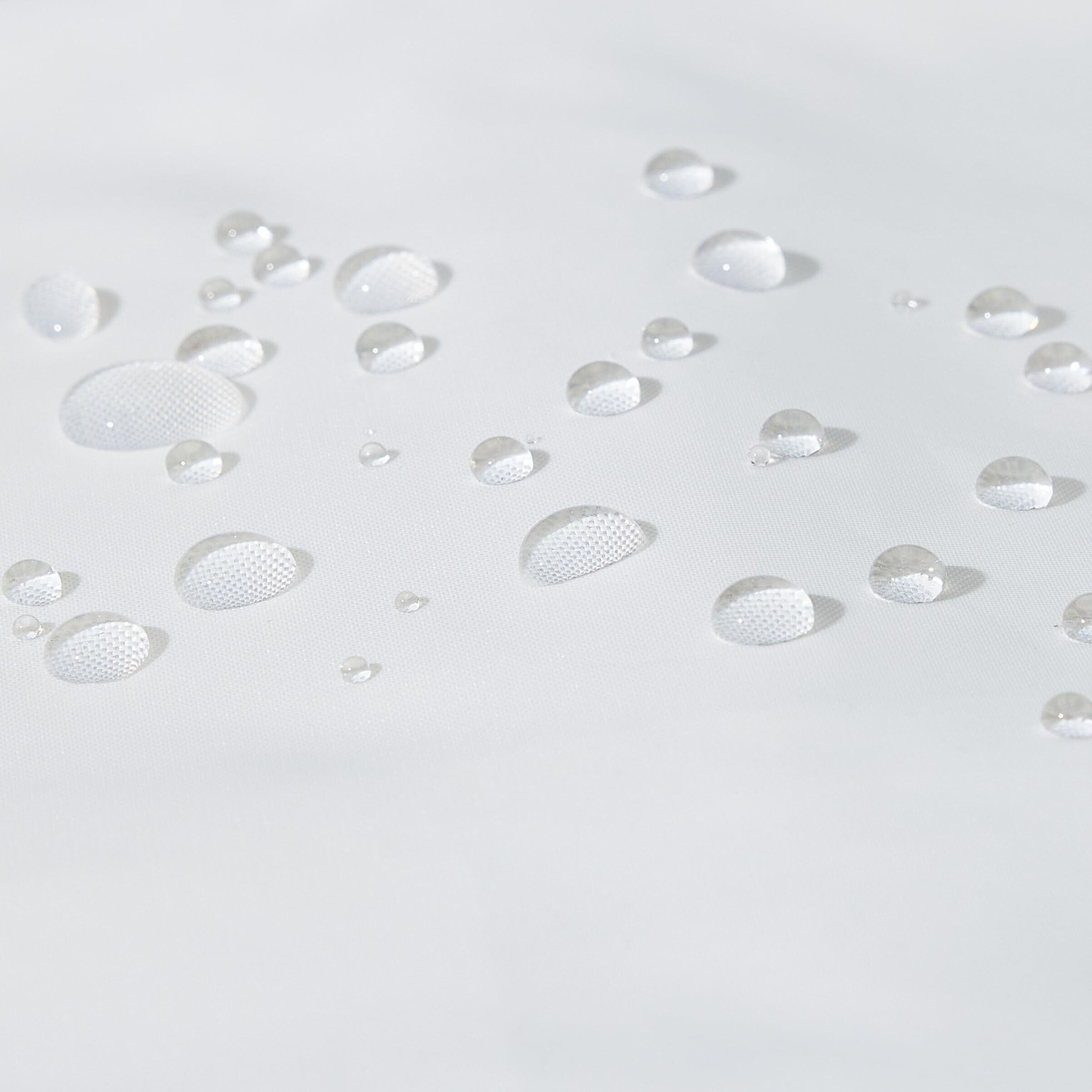 撥水加工された生地のホワイトのライナー付きシャワーカーテンです。