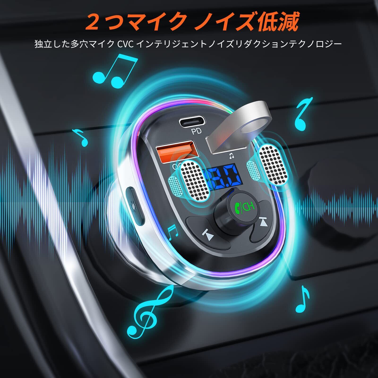 【 2025進化モデル】SONRU FMトランスミッター Bluetooth 5.3 デュアルマイク ノイズ軽減 車載充電器 3つポート USB&Type-C QC3.0急速充電 PD30W対応 車載FMトランスミッター 12V/24V車対応 ハンズフリー通話 7色LEDライト シガーソケット USBメモリSiri&Google Assistant対応 日本語取扱説明書 | hananoki