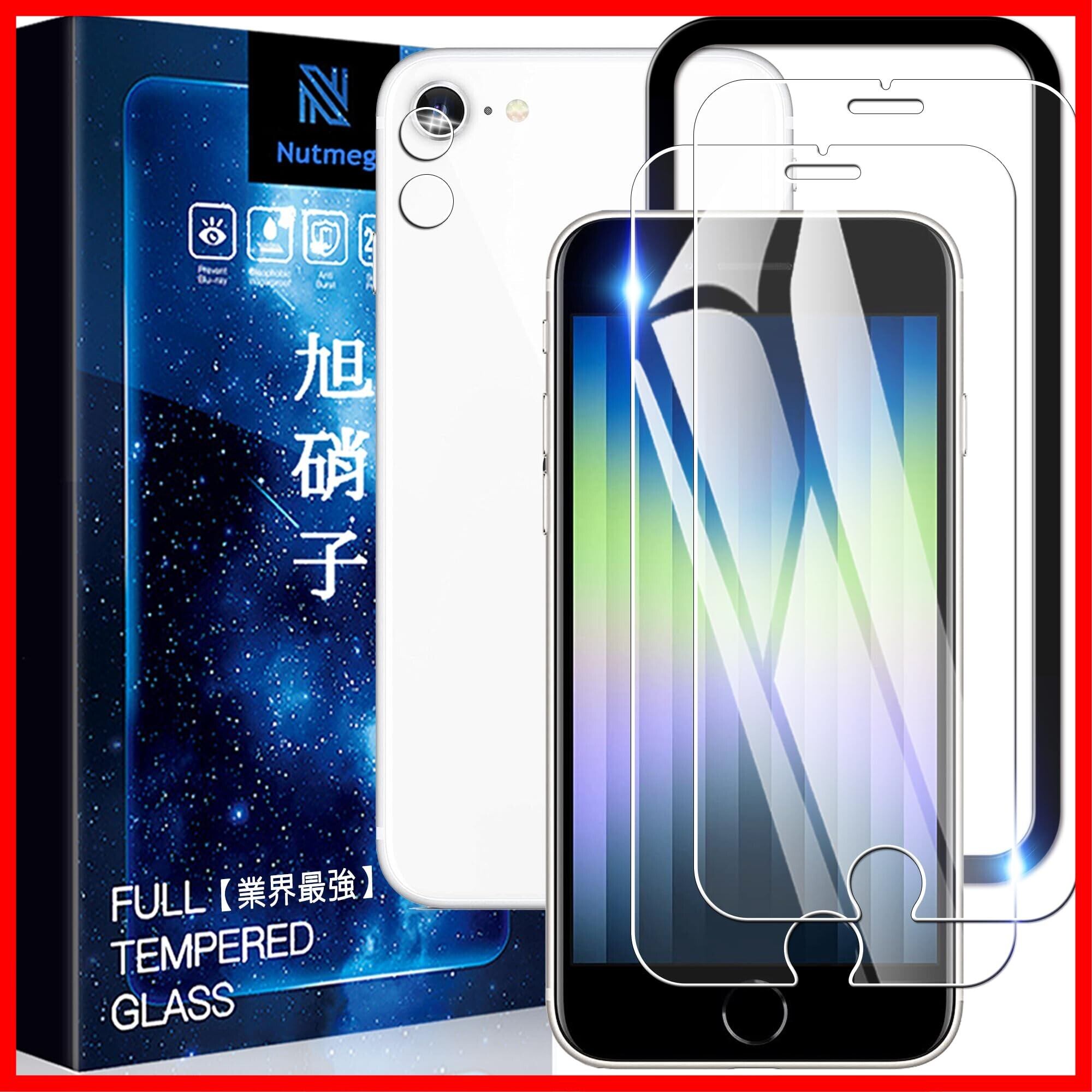 Nutmeg【2+2枚セット】iPhone se3 用の ガラスフィルム + iPhone se2/se3 用の レンズフィルム【ガイド枠付き】IPhone se3/se2/iPhone8/iPhone7 用の フィルム アイフォンSE3/SE2/8/7 用の 保護フィルム 強化ガラス 日本製旭硝子採用 高透過率 耐衝撃 気泡防止 硬度9H 飛散防止 超高質感 スクラッチ防止 貼り付け簡単