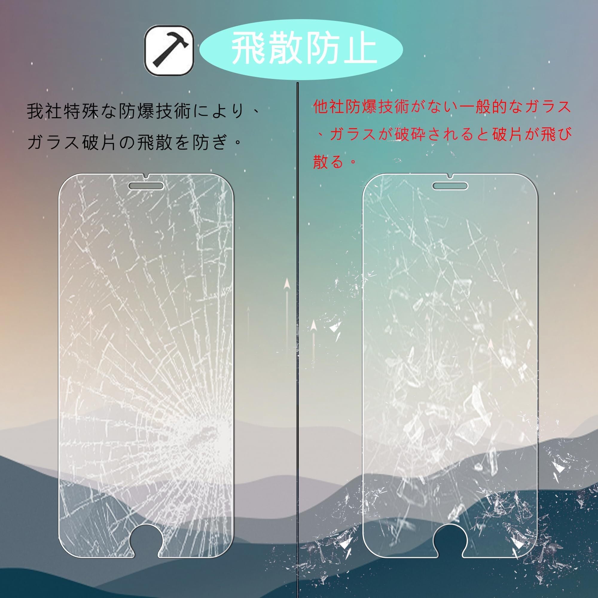 【ハードコート加工、飛散防止】:衝撃で割れても飛散せず、ユーザーの身の安全を守る日本製素材の強化ガラスを採用