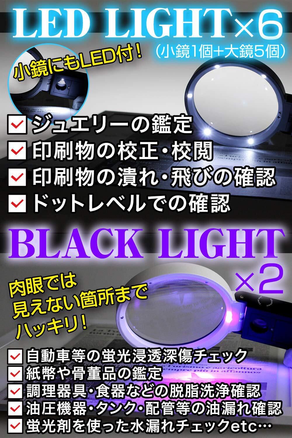* 【ブラックライト搭載】ブラックライトで、自動車の蛍光浸透傷のチェック、紙幣・骨董の鑑定、調理器具の脱脂洗浄チェック、油圧機器の油漏れチェックなどに使えます。