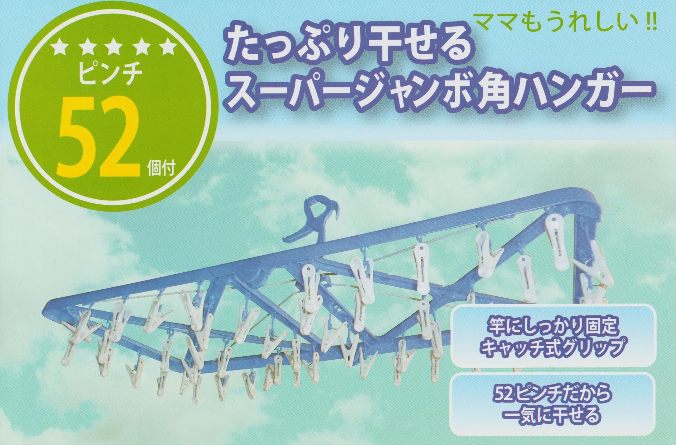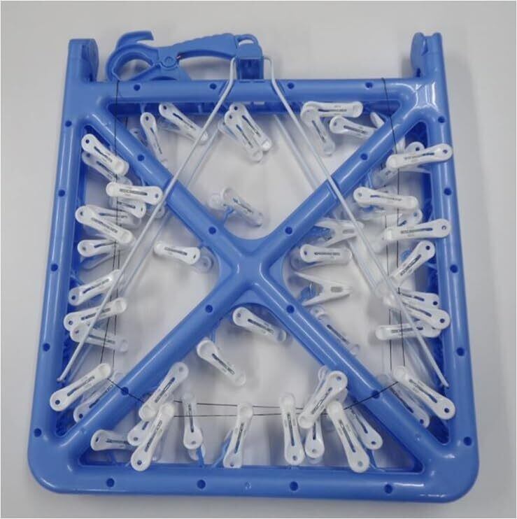 水勘製簾所 洗濯 物干し ワイヤー角ハンガー 折りたたみ式 ピンチ 52個付き 部屋干し カモイフック付き ブルー 約幅84㎝×奥行39㎝×高さ30㎝(展開時)