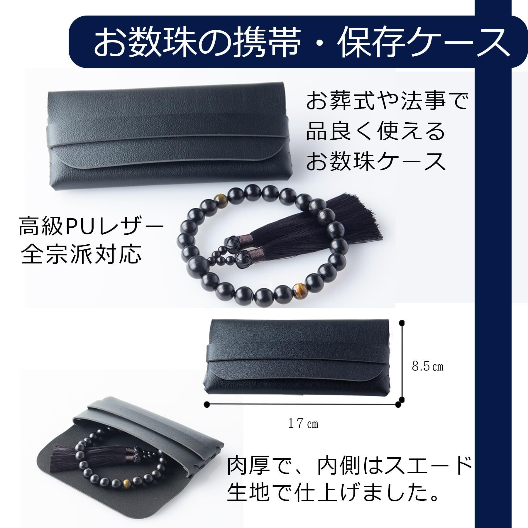 【お仏壇.Te to Te 手と手】日本製 本黒檀22珠 ヴェルベットシルク房 虎目石 男性用 最適PUレザーお数珠入れ付き 墓参り 通夜 告別式 数珠入れ 女性用お数珠 数珠 念珠 念誦【創業65年仏壇店】おじゅず