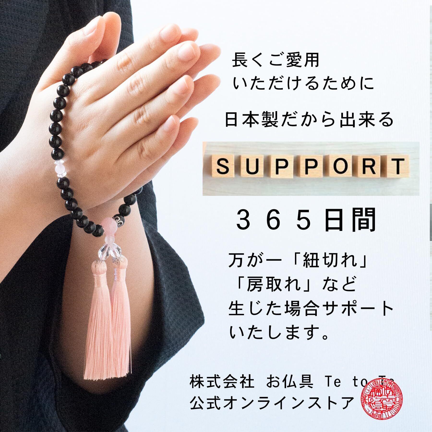 創業65年「お仏壇 Te to Te 手と手 オリジナルブランド」として特許庁に商標登録されたお数珠をお届けいたします。 大切な方への想いは色あせることはありません。その想いとお客様にいつも寄り添う優しいアイテムです。初めてお数珠を持たれる方、ふだん使いとしてお使いいただく方にもおすすめの「略式数珠」と「持ち運び用・数珠ケース」のセットです。すべての宗派で使用可能です。お墓参り・お寺参りにも安心して使用いただけます。
