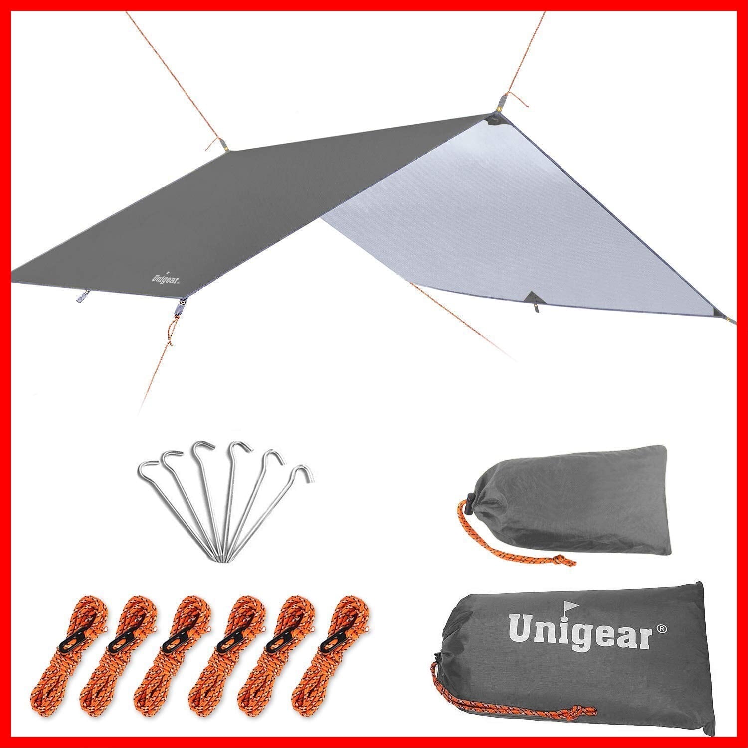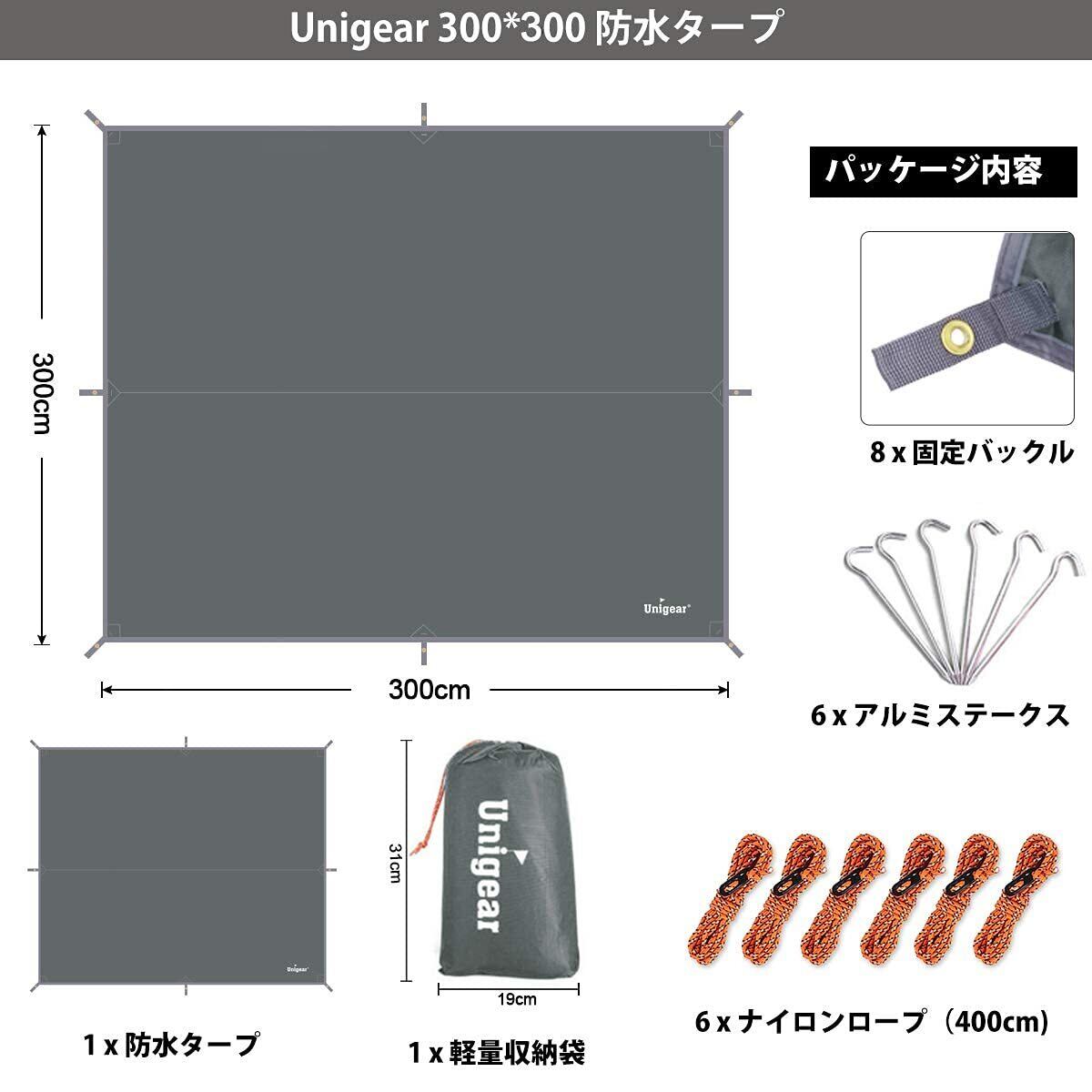 Unigear 防水タープ キャンプ タープ テント 軽量 日除け 高耐水加工 紫外線カット 遮熱 サンシェルター ポータブル 天幕 シェード アウトドア 収納ケース付 2-6人用 4サイズ(グレー, L(300*300)) | hananoki
