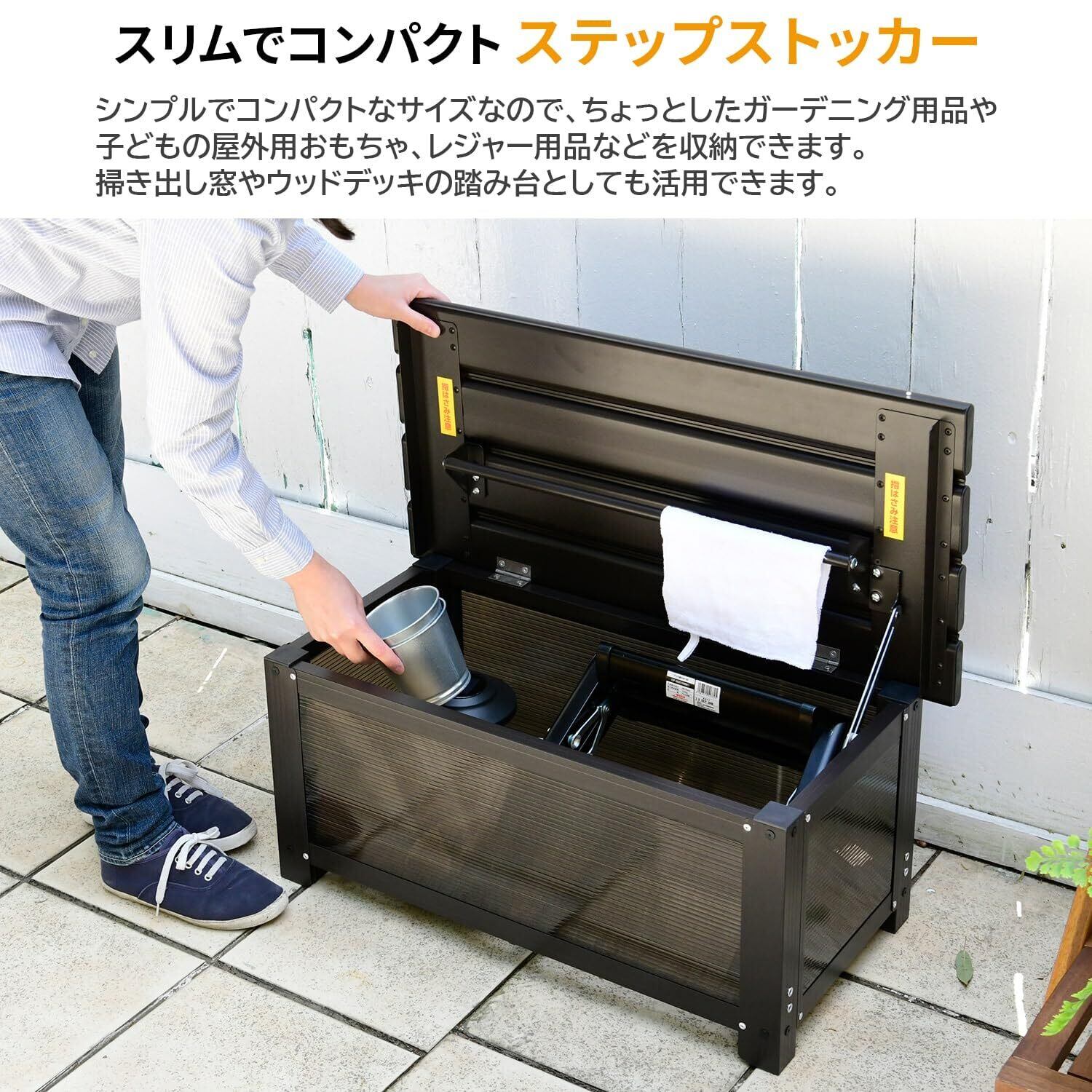 ガーデンマスター(Gardenmaster) ステップストッカー 幅74×奥行36×高さ32cm アルミ天板 ベンチストッカー ベランダ バルコニー 軽量 踏み台 玄関台 お庭 ガーデンマスター ダークブラウン KSS-74H | hananoki