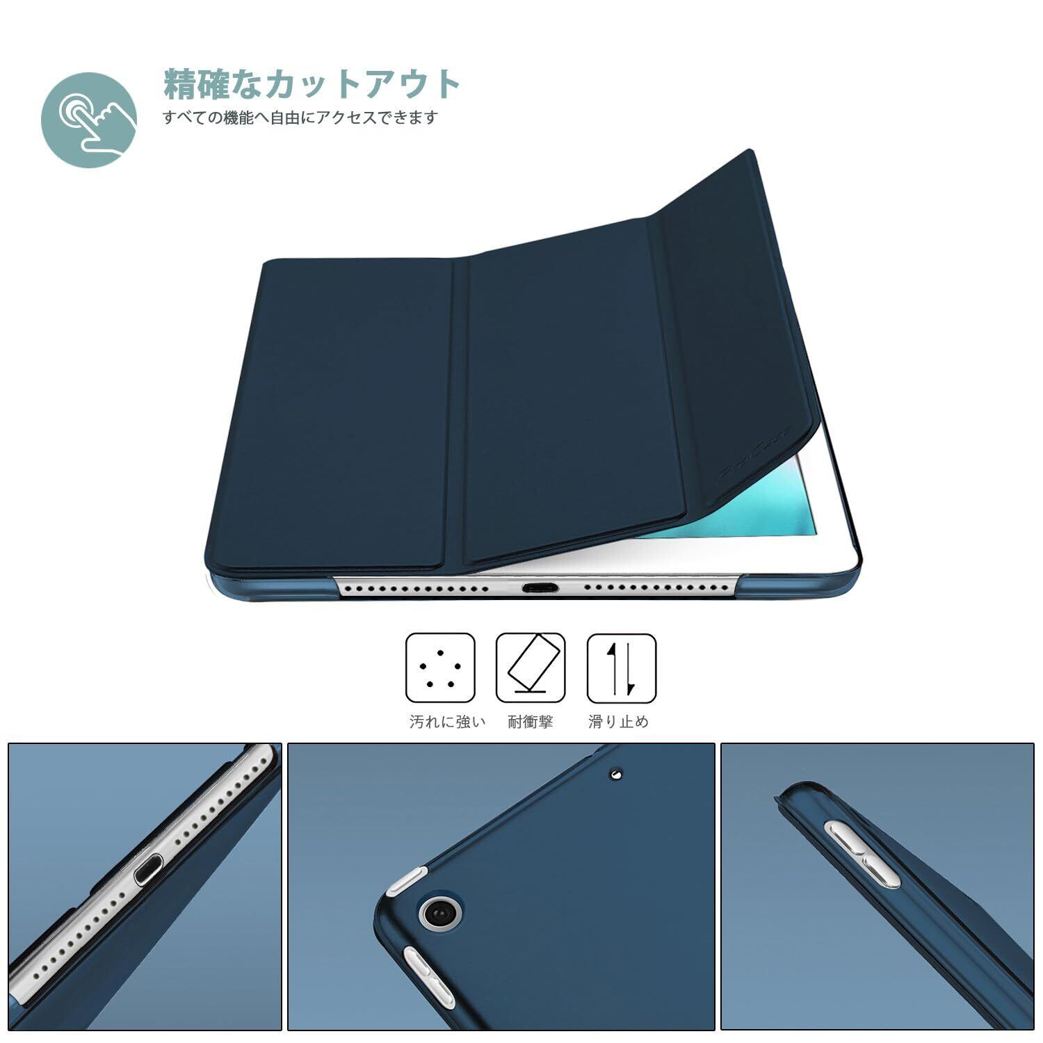 ProCase iPad Mini 5 ケース オートスリープ/ウェイク機能 三つ折りスタンド スマート 超スリム フォリオ保護ケース 半透明フロスト バックカバー 対応端末:Apple iPad Mini 第5世代 2019発売 7.9" (A2133 A2124 A2126)–ネービー