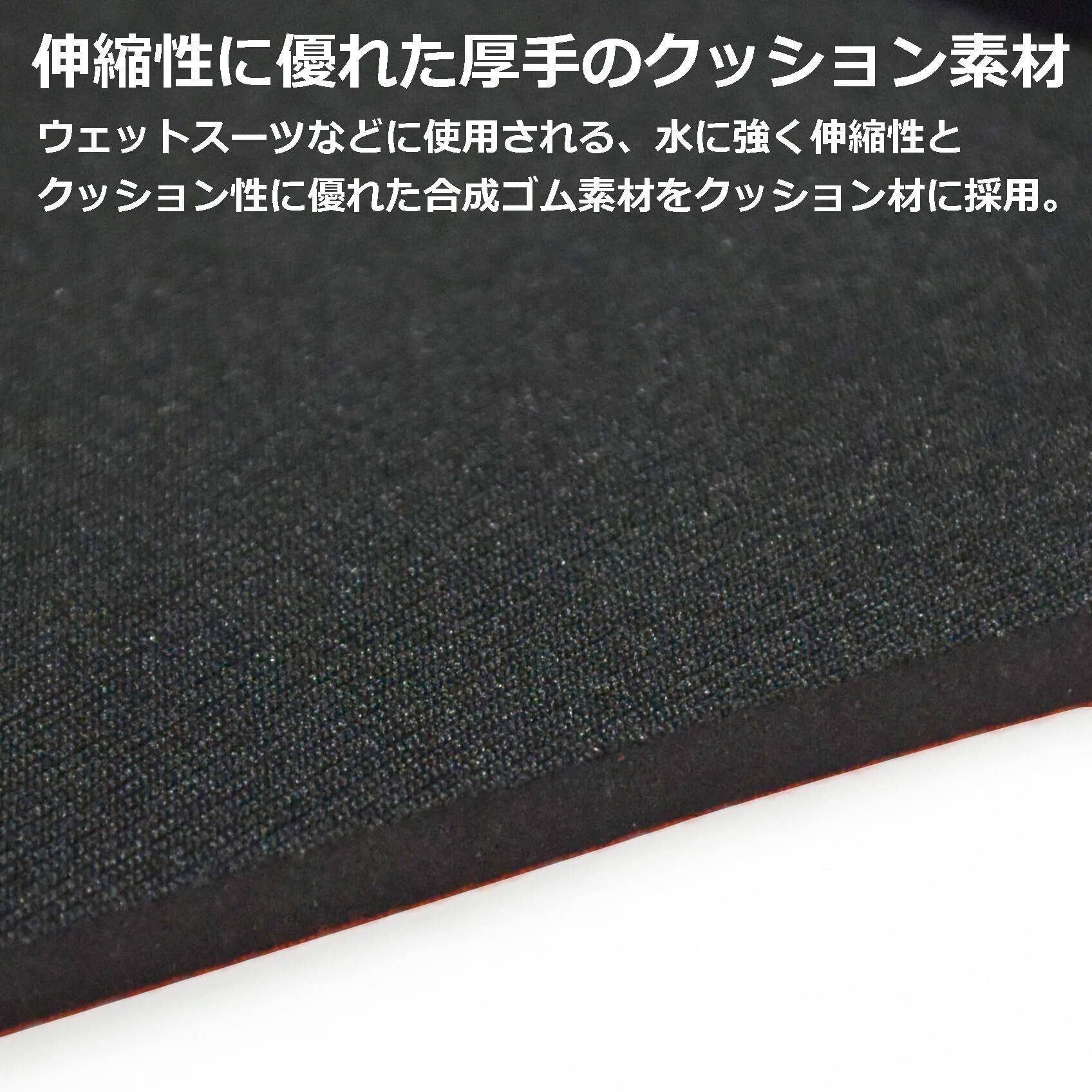 水に強く伸縮性とクッション性の高い5mm厚の合成ゴムをクッション材に採用。