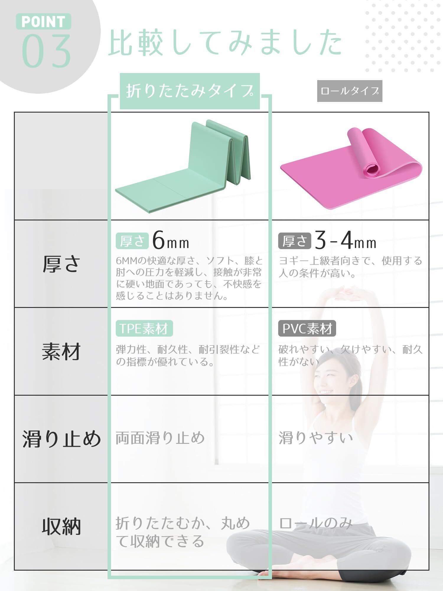 【折りたたみヨガマット tpe 6mm】6mm、より快適で滑りにくい。
