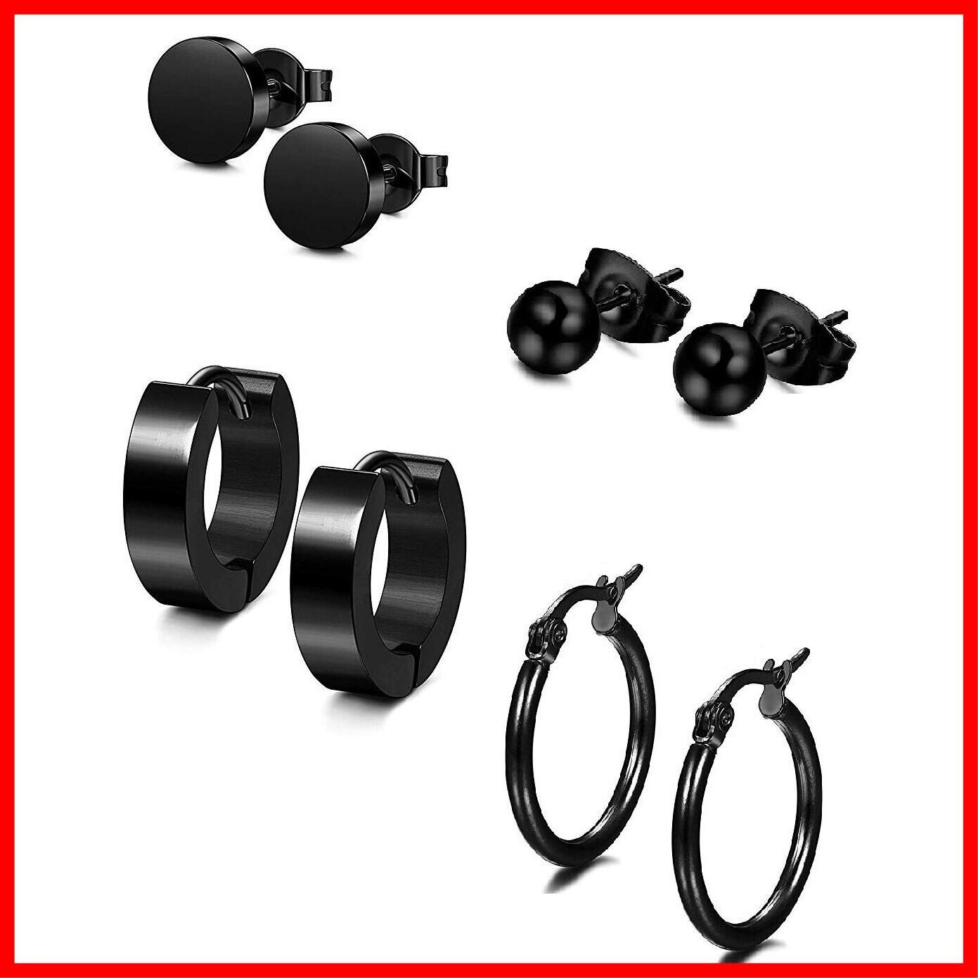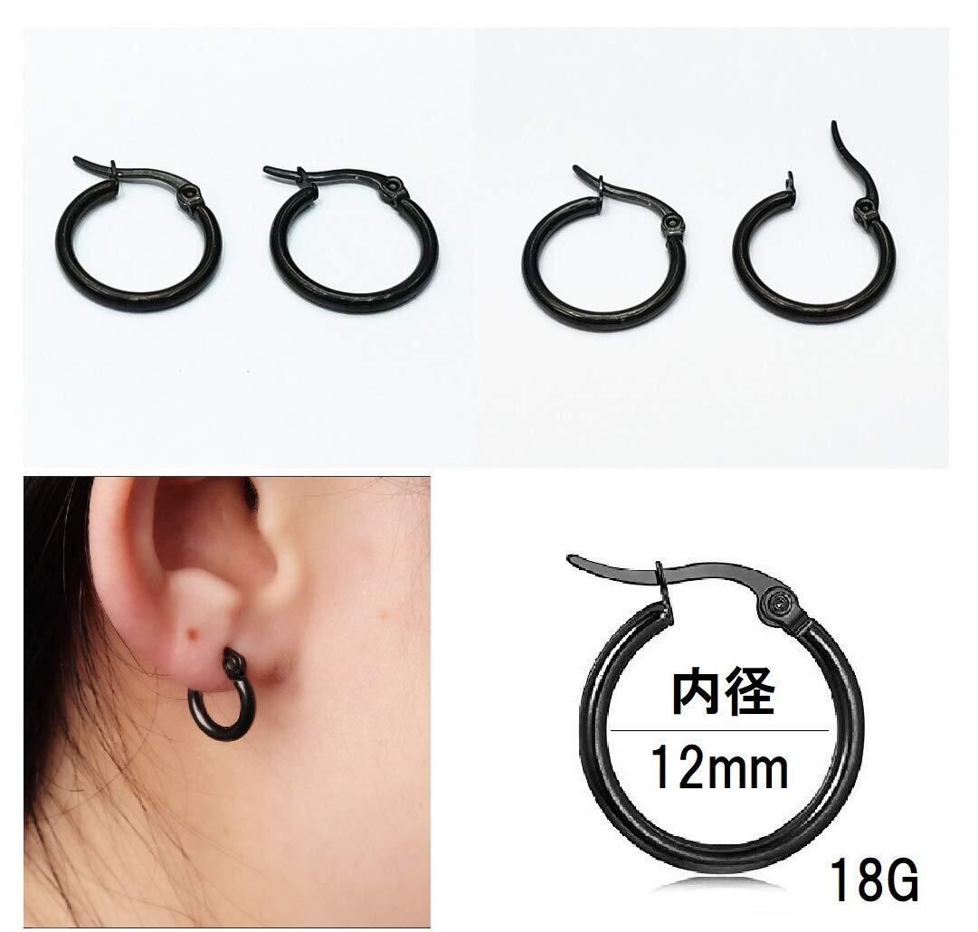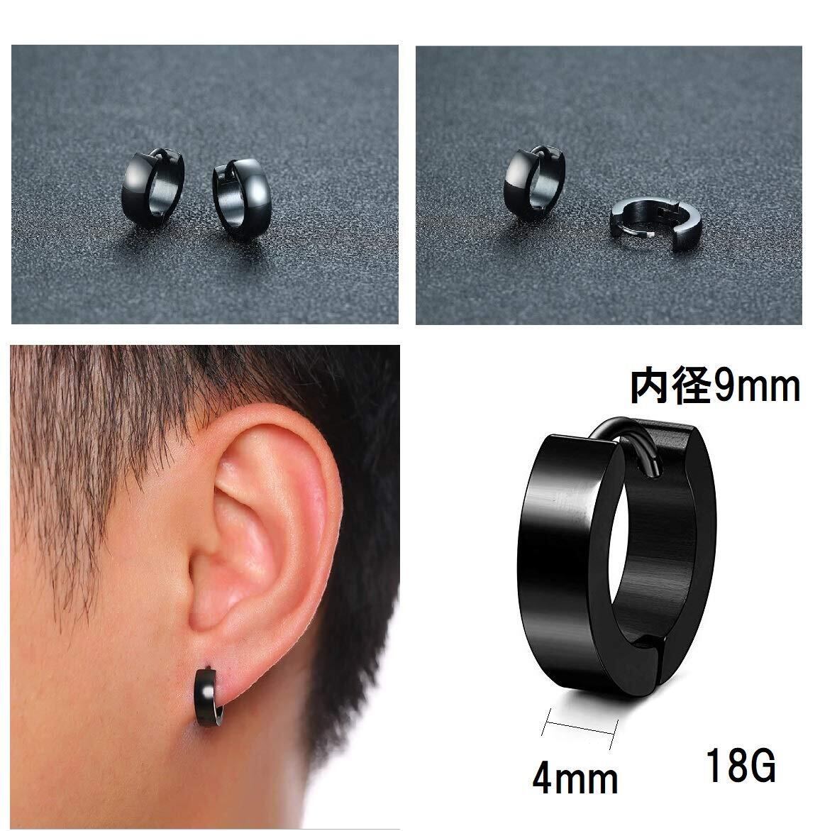 [セイヤインターナショナル] ピアス メンズ レディース 両耳用 フープ リング スタッドピアス ステンレス 黒 4ペア 8個 セット