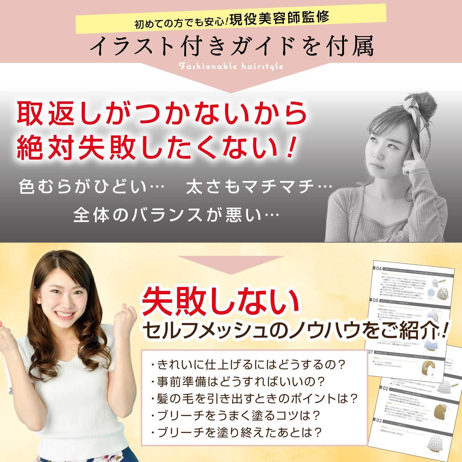 【初心者でも安心!】届いたその日に使える 自宅でできる メッシュカラー 4点セット!プロ直伝のイラストガイド付きだから、セルフカラー が初めての方でも迷わずご使用いただけます。