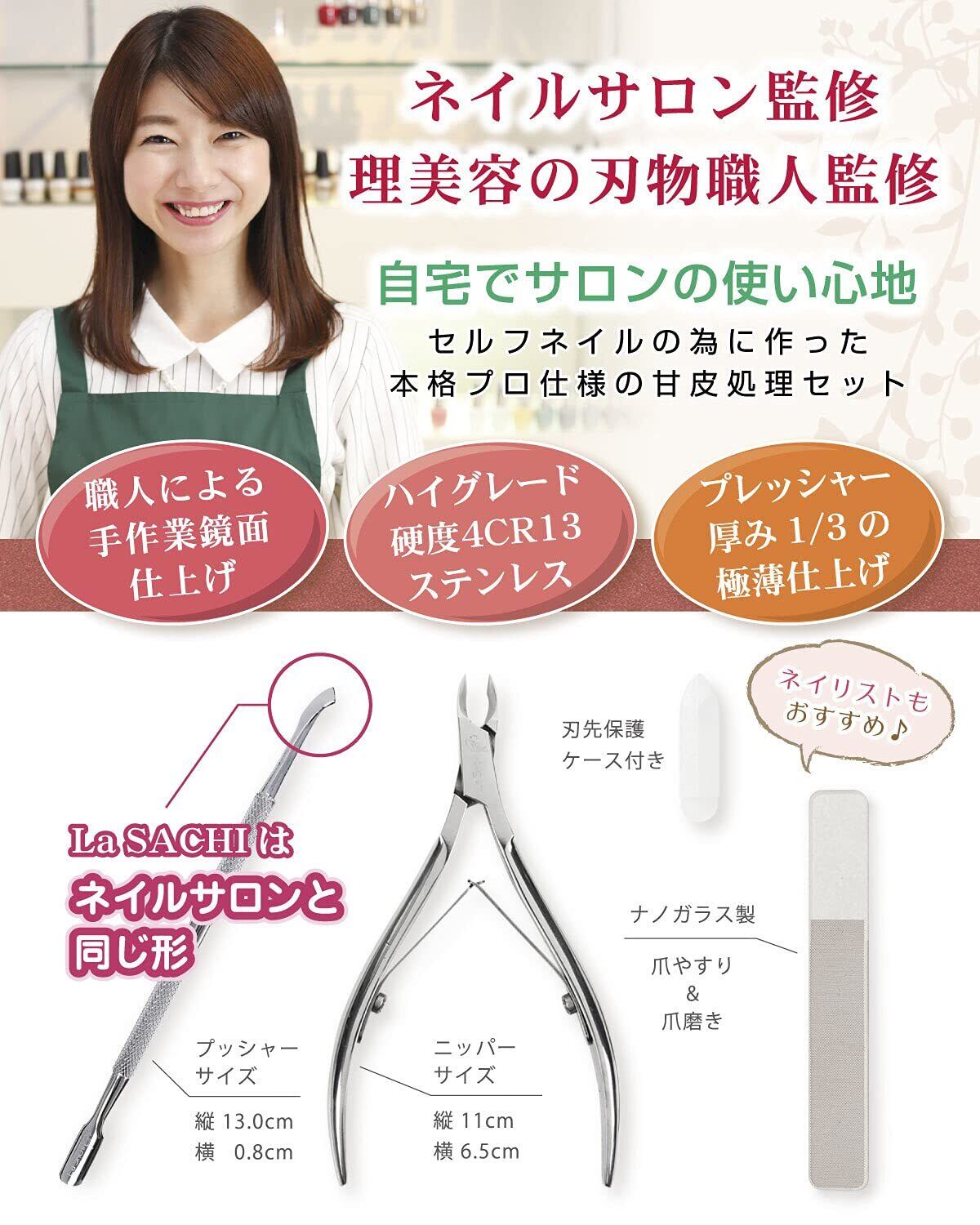 La SACHI 甘皮 処理 セット 本物志向向け キューティクル ニッパー プッシャー 爪やすり 手指 ケア セルフ ジェル ネイル 甘皮切り マニキュア ささくれ
