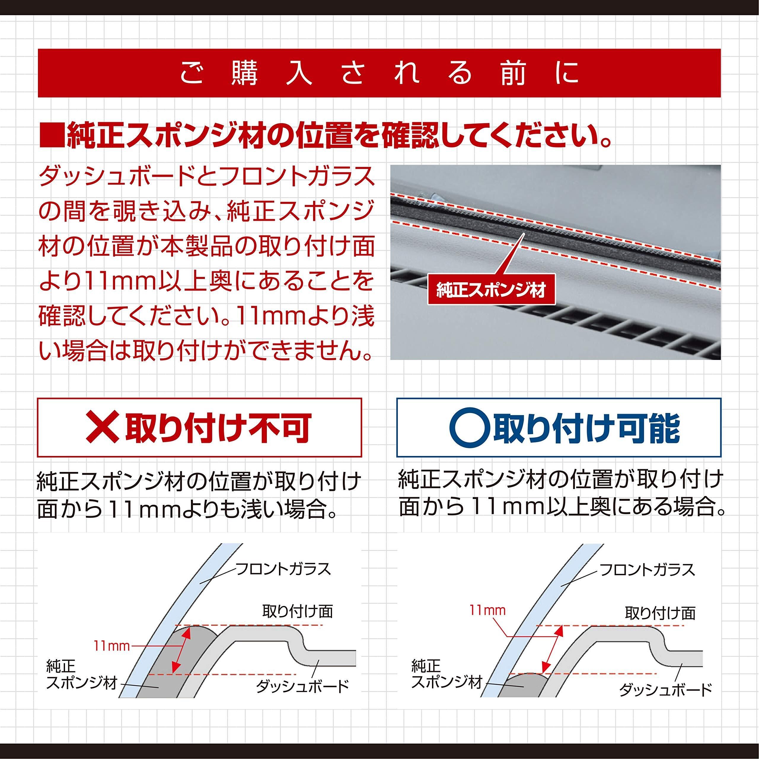 ダッシュボード付近のビビり音を低減。 ダッシュボードとフロントガラスのガタツキによるビビり音を抑え、静音化。 フロントガラスとダッシュボードの間でモールがピタッと突っ張ることでビビり音・異音を低減する。 特別な工具なくハサミだけで施工できる。(モールを押し込みにくい場合は内張りはがし等で押し込むと作業しやすい。)