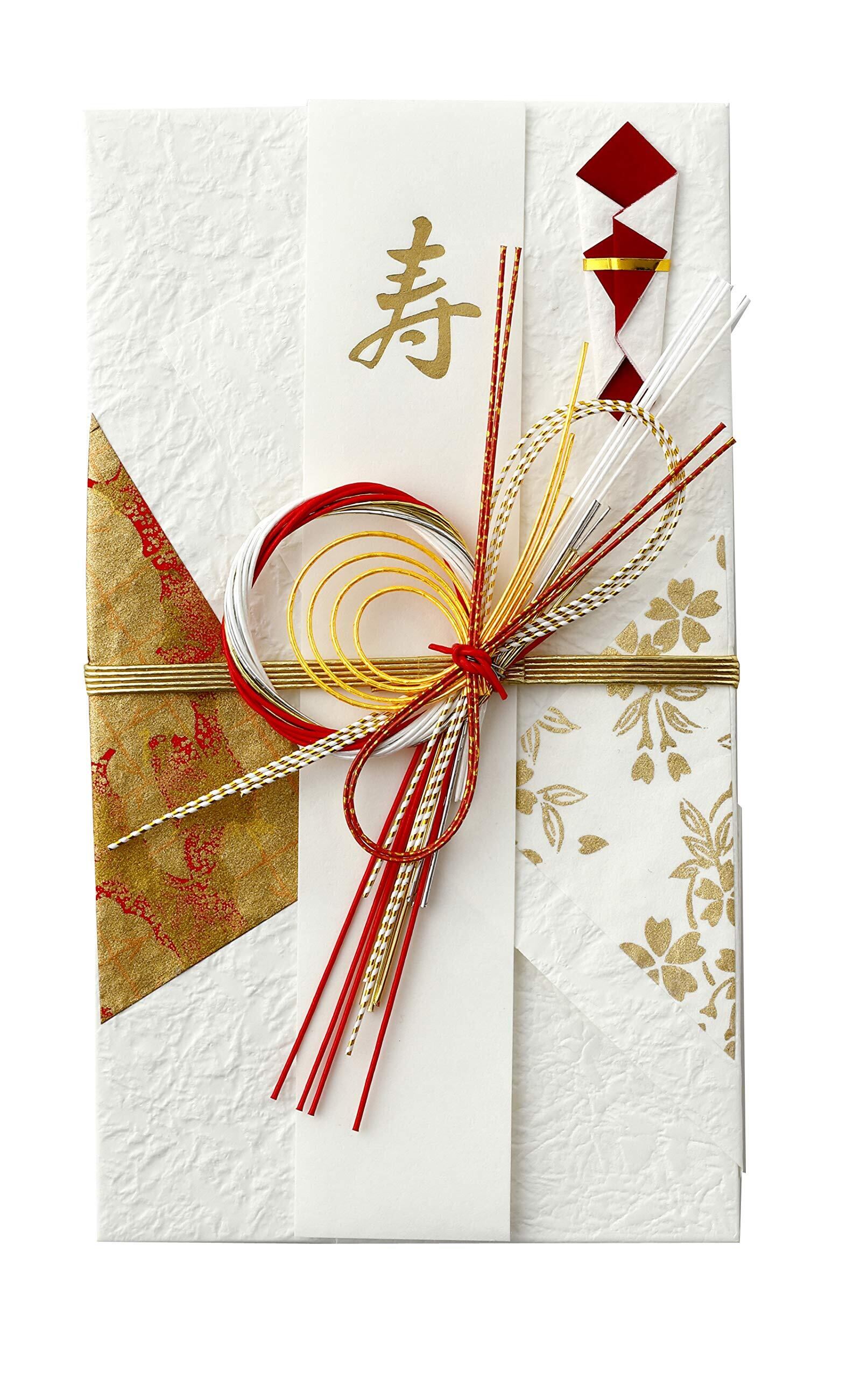 【祝儀袋】格調高く伝統的な純白のもみ紙に、お祝いらしい赤の水引と金色使いが、とても華やかな印象です。伝統に添いながらも現代的なテイストを加えた人気の金封です。「短冊3種」・寿・御祝・御祝・無地