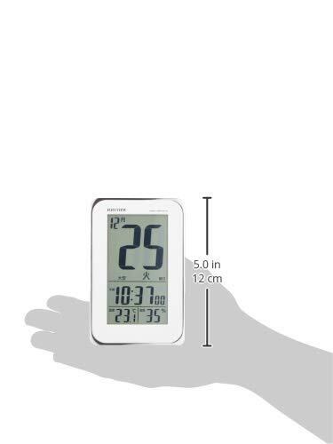 リズム(RHYTHM) 目覚まし時計 電波時計 電子音アラーム 温度 湿度 日めくり カレンダー 六曜 ライト付き 白 12.8x8.2x2.3cm 8RZ139SR03