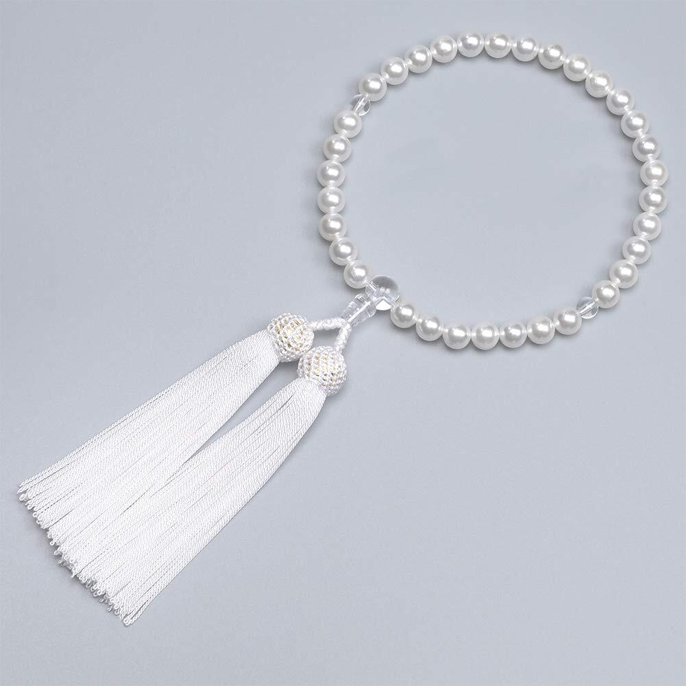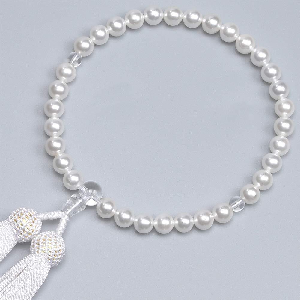 [レオビ- ストア] LEOBEE 貝パール 女性用数珠 マグネット式数珠袋付き 念珠 じゅず 手作り念珠 数珠ブレスレット 葬式 葬儀 墓参り 法事 念誦 全ての宗派で使用頂け (本貝パール) | hananoki