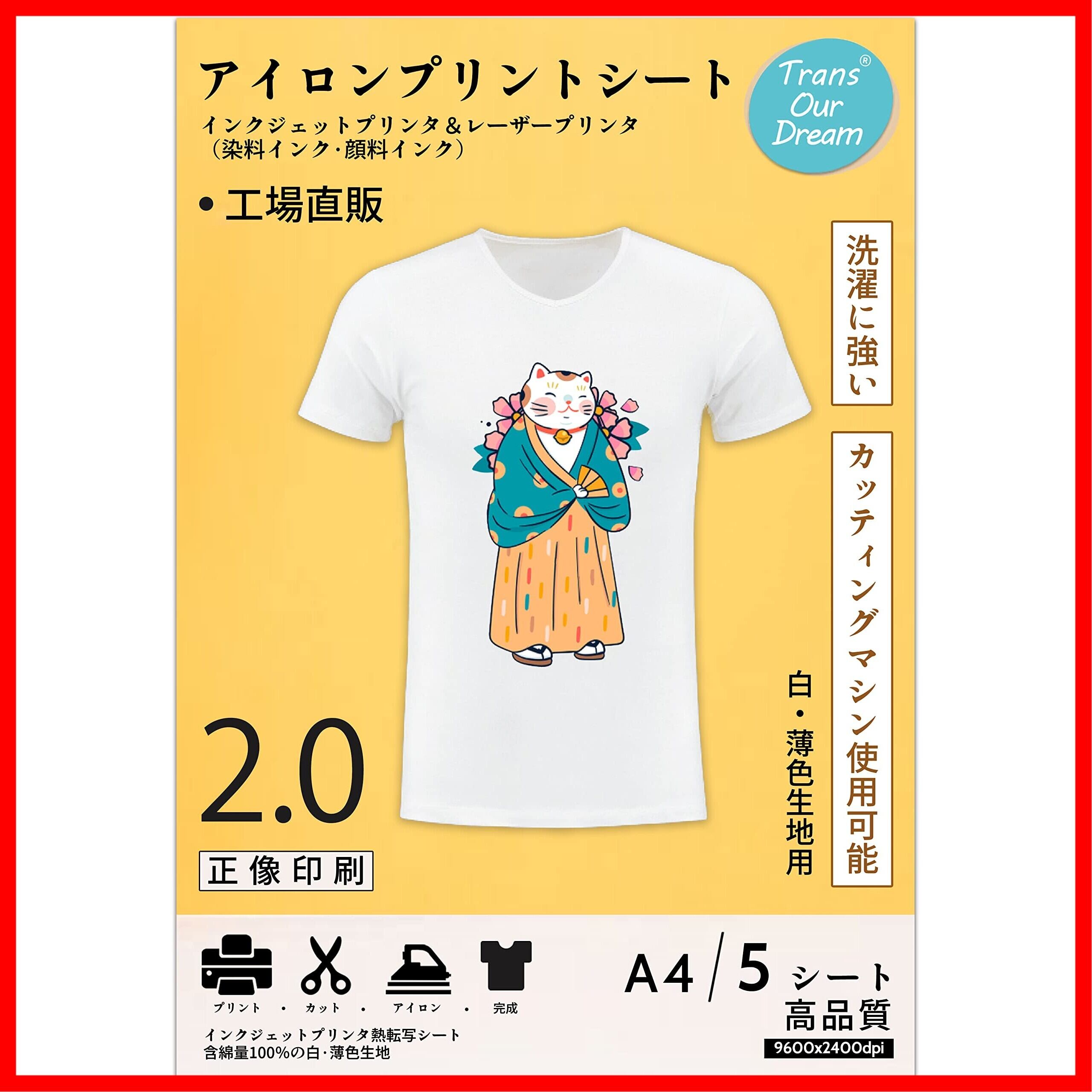 TransOurDream 真正の転写シート アイロンプリントシート2.0 正像印刷 白·薄色生地用 A4 5枚Tシャツ熱転写シート 洗濯に強い インクジェットプリンター·レーザープリンター両方使用可能 SKU:JP-2-5