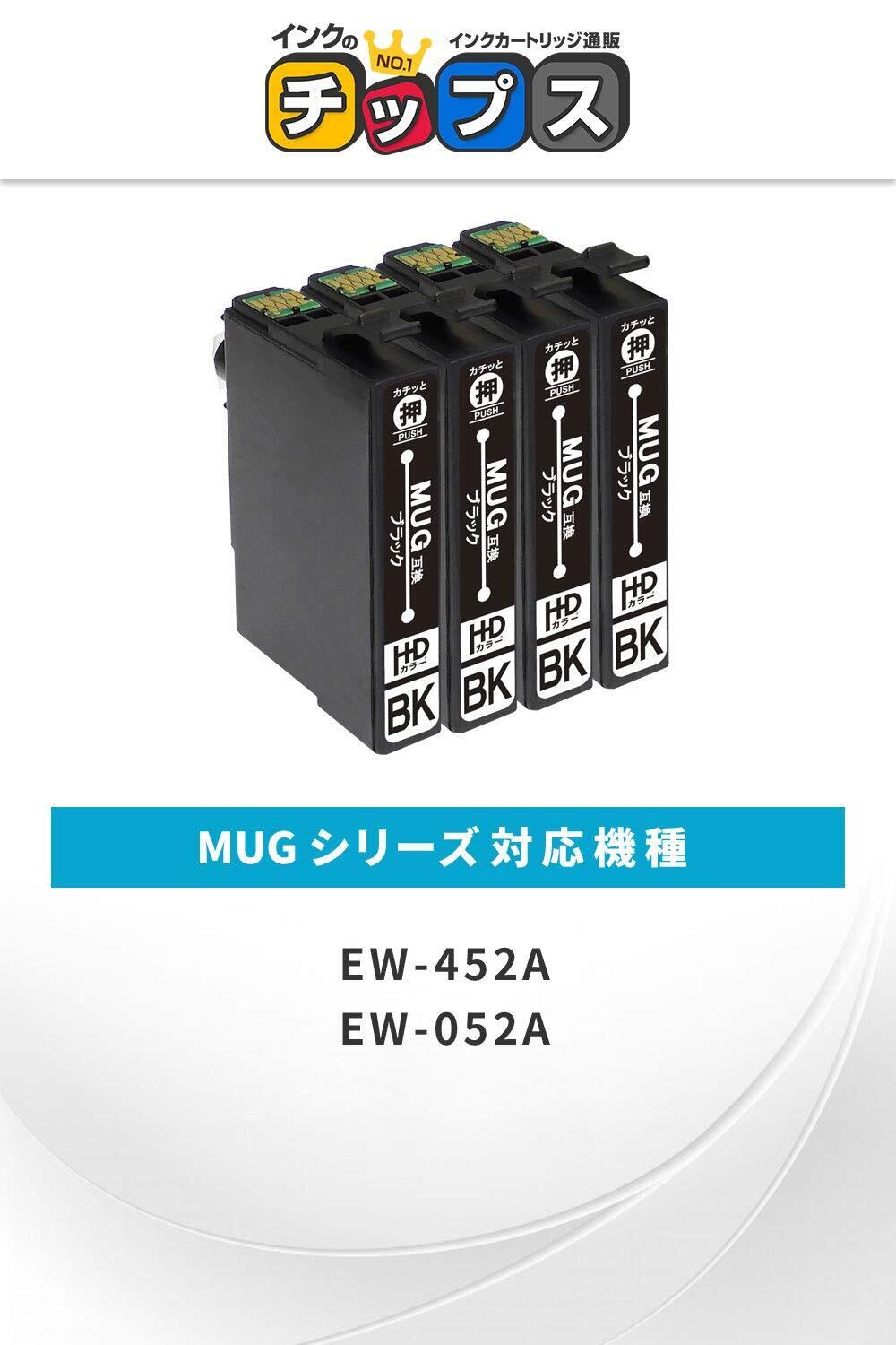 【インクのチップス】 マグカップ互換 MUG互換 MUG-BK ブラック 4本セット エプソン(EPSON)用 互換インクカートリッジ <残量検知対応><発色鮮やかな染料インク> 対応機種 : カラリオ Colorio EW-452A / EW-052A MUG-BK mugbk mug インク 互換 黒