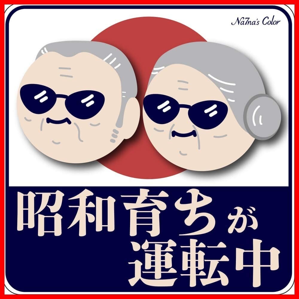 Na7na's Color 車 マグネットステッカー 昭和育ちが運転中 もみじマーク 高齢者 ドライバー 耐水 UVカット 14.8cm