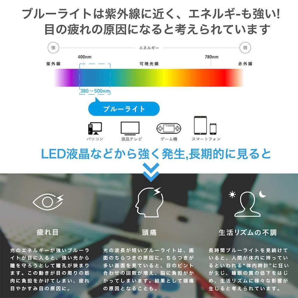 ブルーライトカット率:49% 紫外線カット率:99%。目の負担を軽減するため、長時間の作業に最適です。