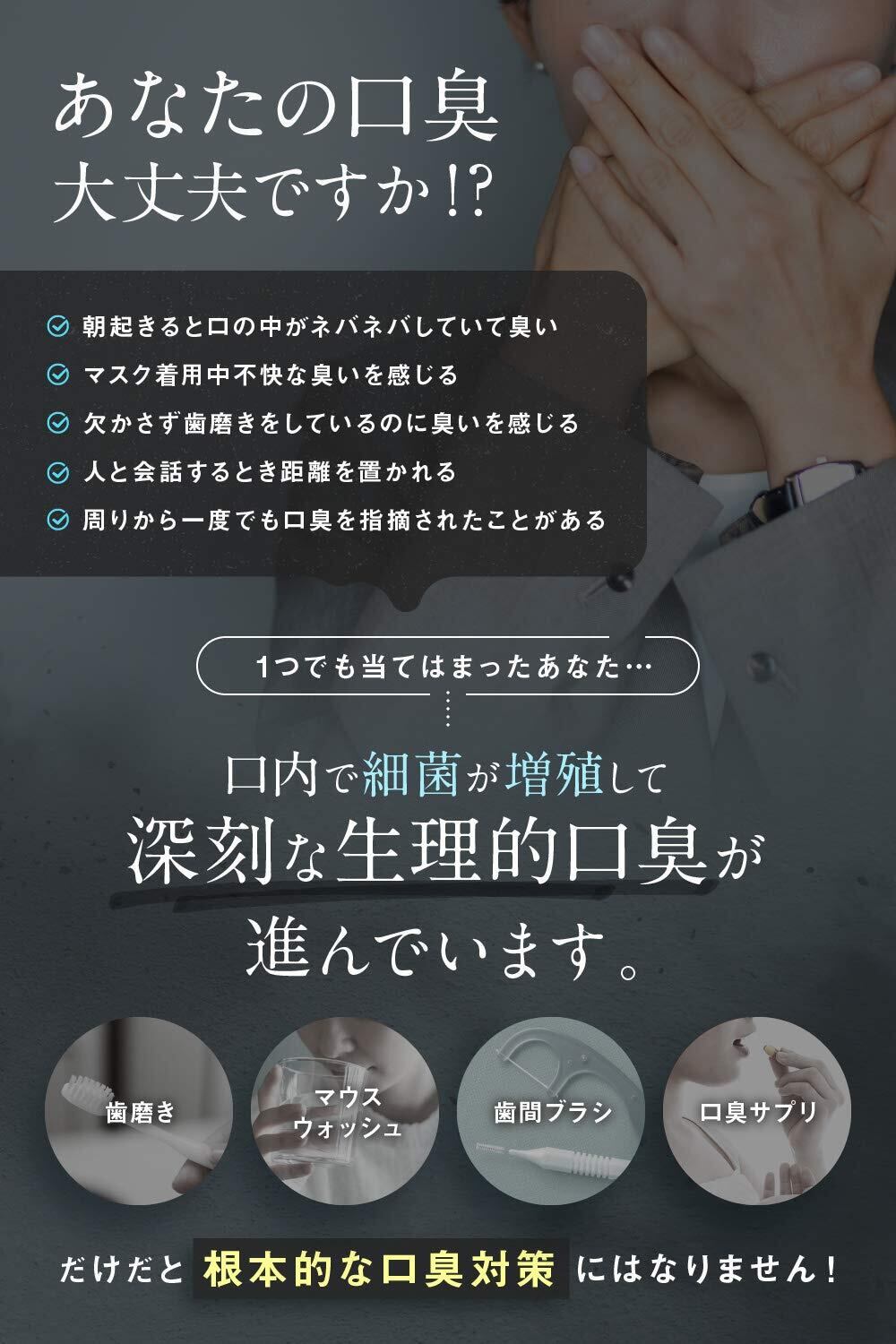 【口臭の主な原因は舌苔】臭いの原因の70%は舌から発生しています。歯磨き、マウスウォッシュ、歯間ブラシ、口臭サプリだと根本的な口臭対策にはなりません。