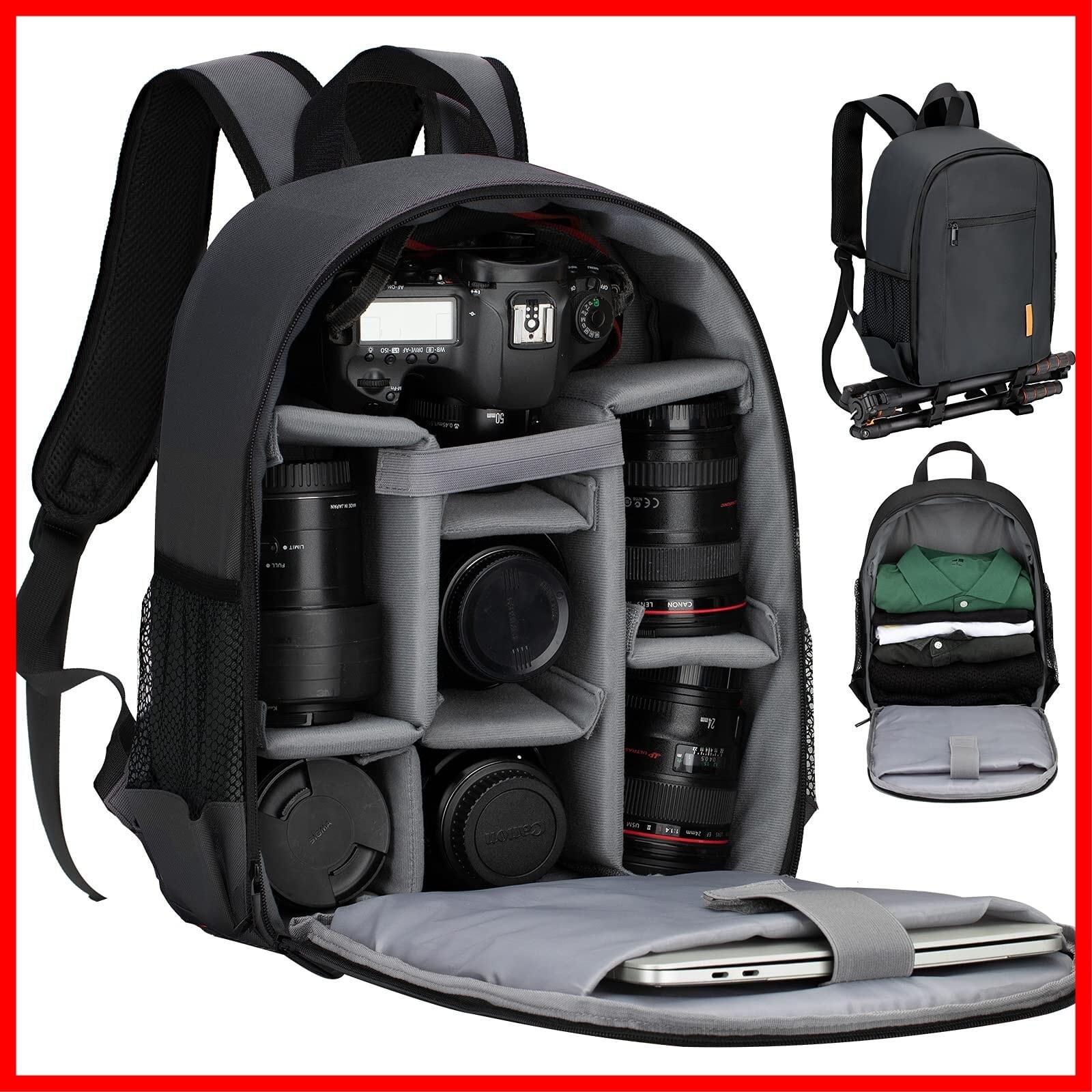 【プロのカメラバックパック】自由組み合わせ可能な綿入り仕切り板付き、カメラ機材などをしっかり守ります。カメラバッグの底にカメラ三脚を取り付けることができます。